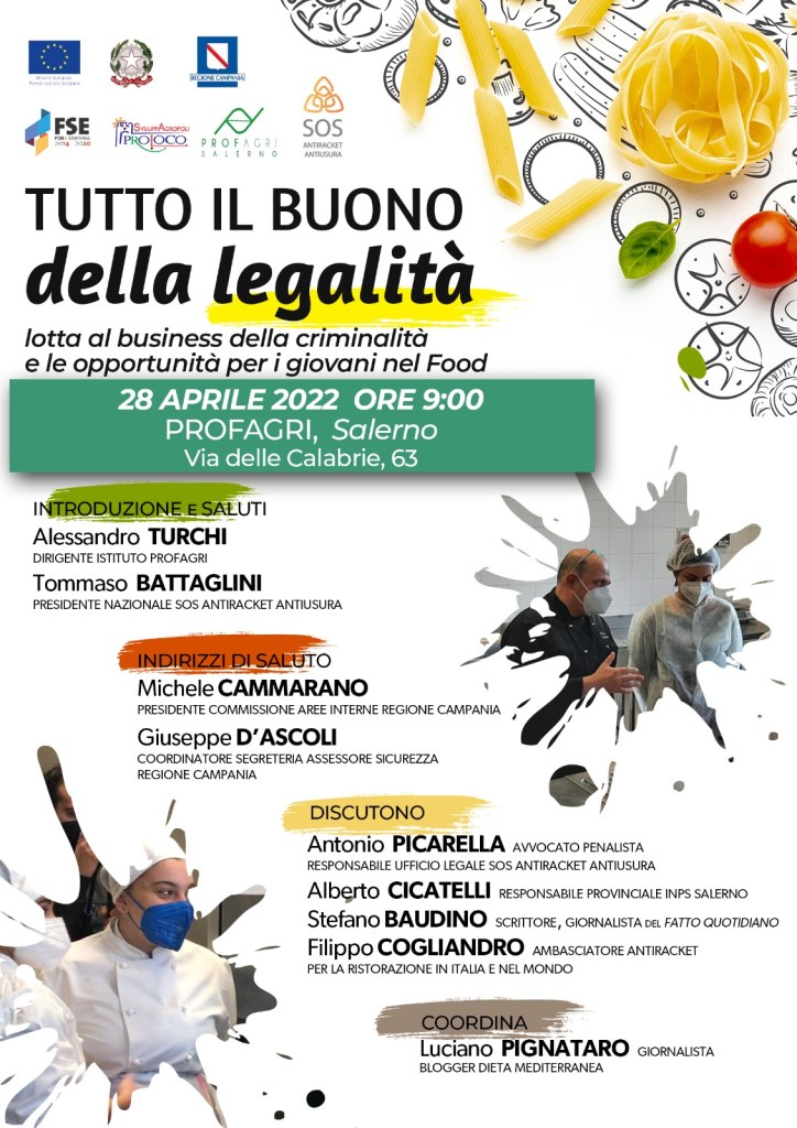 Domani sera, giovedì 28 aprile, sarà lui, l’ambasciatore antiracket per la ristorazione in Italia e nel mondo, insieme alla brigata degli studenti dell’Alberghiero ITIS Ferrari, a mettere nei piatti tutto il buono della legalità attraverso i prodotti del territorio accuratamente selezionati dai ragazzi del ProfAgri di Salerno.