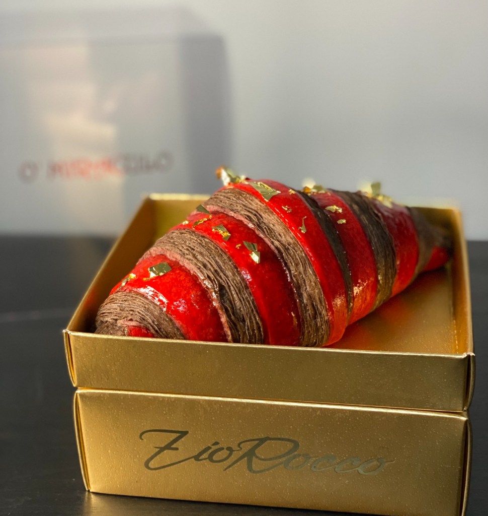 Un dolce omaggio al patrono di Napoli, San Gennaro, con un cornetto che lo ricorda attraverso il sapiente mix di ingredienti, profumi e colori. Il pastry chef Rocco Cannavino ha ideato per il 19 settembre “O’Miraculo”, disponibile nei Lab Store Zio Rocco a Napoli (vico Polveriera 27) e a Pomigliano d’Arco (via Roma 161), e verrà venduto in limited edition in soli 40 pezzi a 25 euro, prenotabile entro il 18 direttamente allo store.