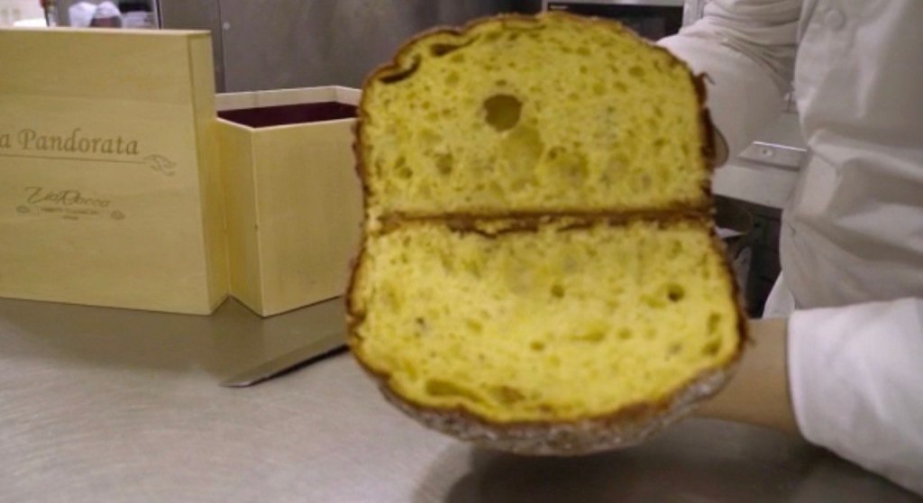 Un prodotto il più naturale possibile realizzato con burro di latteria, bacche di vaniglia Bourbon, uova fresche e buccia di agrumi grattugiata (limone e arancia). Il tutto all’interno di una scatola in legno rivestita di velluto, fatta a mano da un artigiano falegname locale, dove troveremo anche due sac a poche con crema al pistacchio e crema a latte di bufala «in modo da farcire ogni singola fetta della Pandorata con la combo più amata di sempre quella bufala e pistacchio».