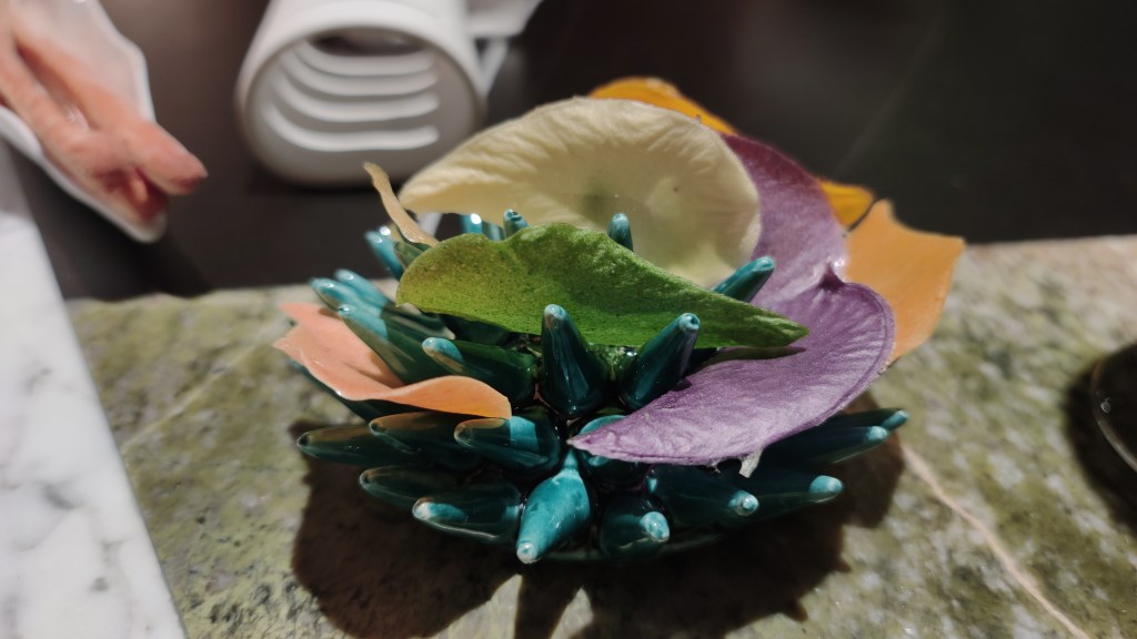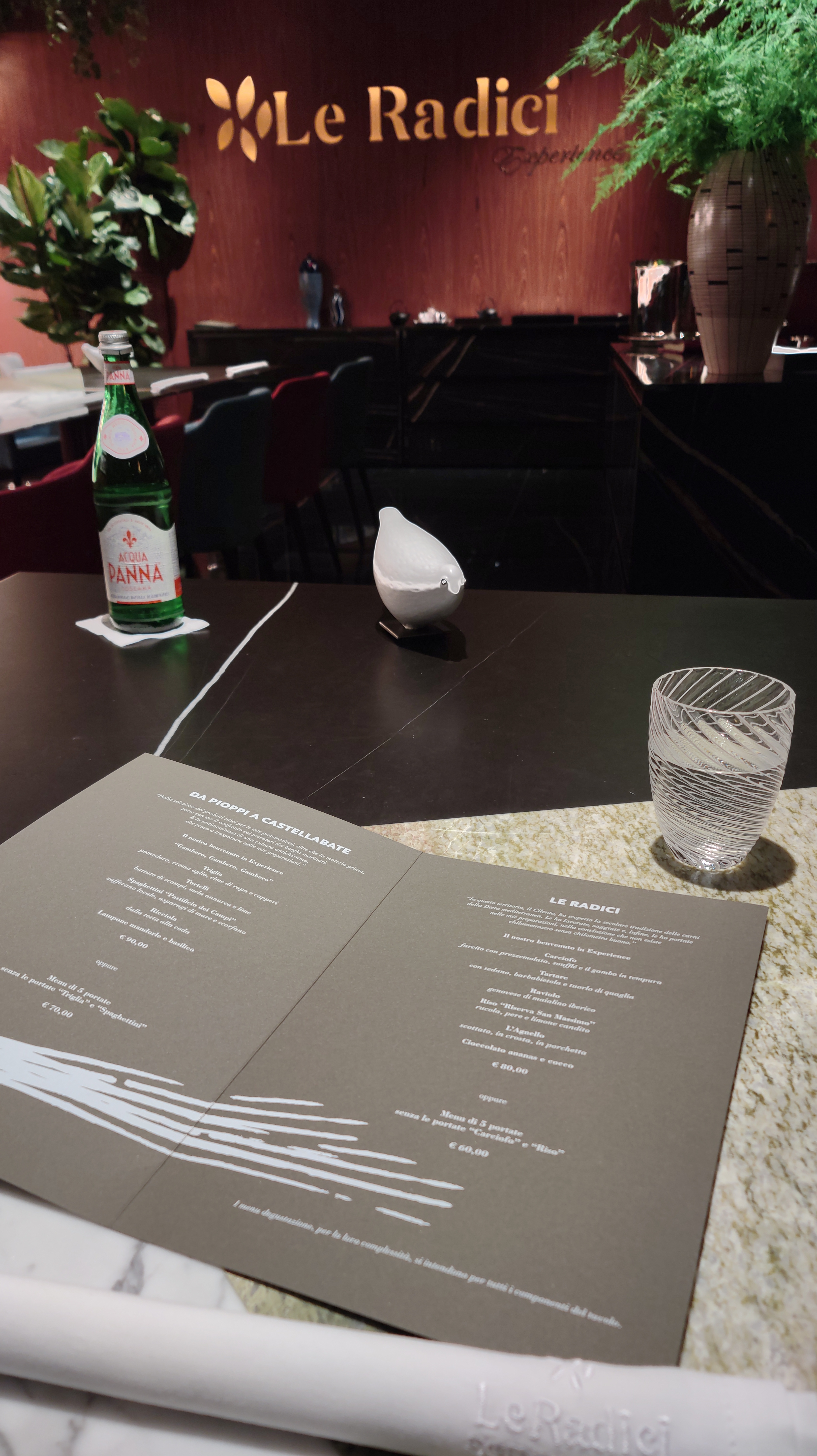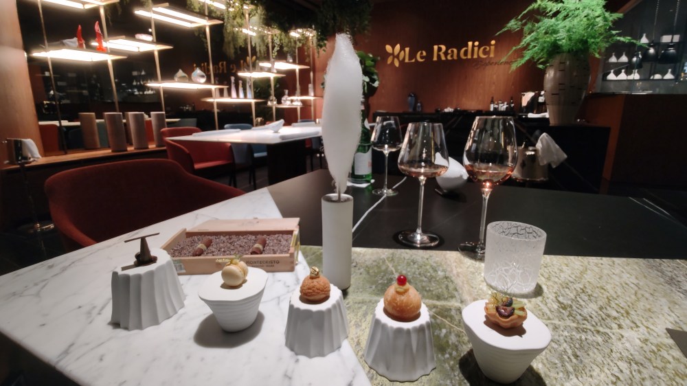 Carta delle acque, degli olii, dei vini, lievitati autoprodotti così come burro e olio, non è mancato nulla al Radici Experience e il percorso di mare è risultato gradevole ed entusiasmante. L’estetica, le forme e le nuance di colori di alcuni piatti hanno riecheggiato opere di Georges Seurat, Paul Signac, Yayoi Kusama, Keith Haring in un crescendo di contrasti pregni di volumi, luci e geometrie. Imperdibili la piccola pasticceria, il pre-dessert, gli entrée e soprattutto lo spaghettino cotto con zafferano prodotto nella zona di Sala Consilina accompagnato con tartare di scorfano e il suo ristretto, asparagi di mare e pelle croccante di scorfano, un sapido e saporito omaggio al Cilento. Il menù di Matteo con le sue sette portate si è mosso tra tradizione e modernità, si è fuso amabilmente con l’ambiente circostante, da cui ha attinto sapori, suggestioni e anche la proposta di mare è diventata terragna, capace di far risaltare il lato più intimo degli ingredienti pur rimanendo saldamente ancorata alle proprie radici.