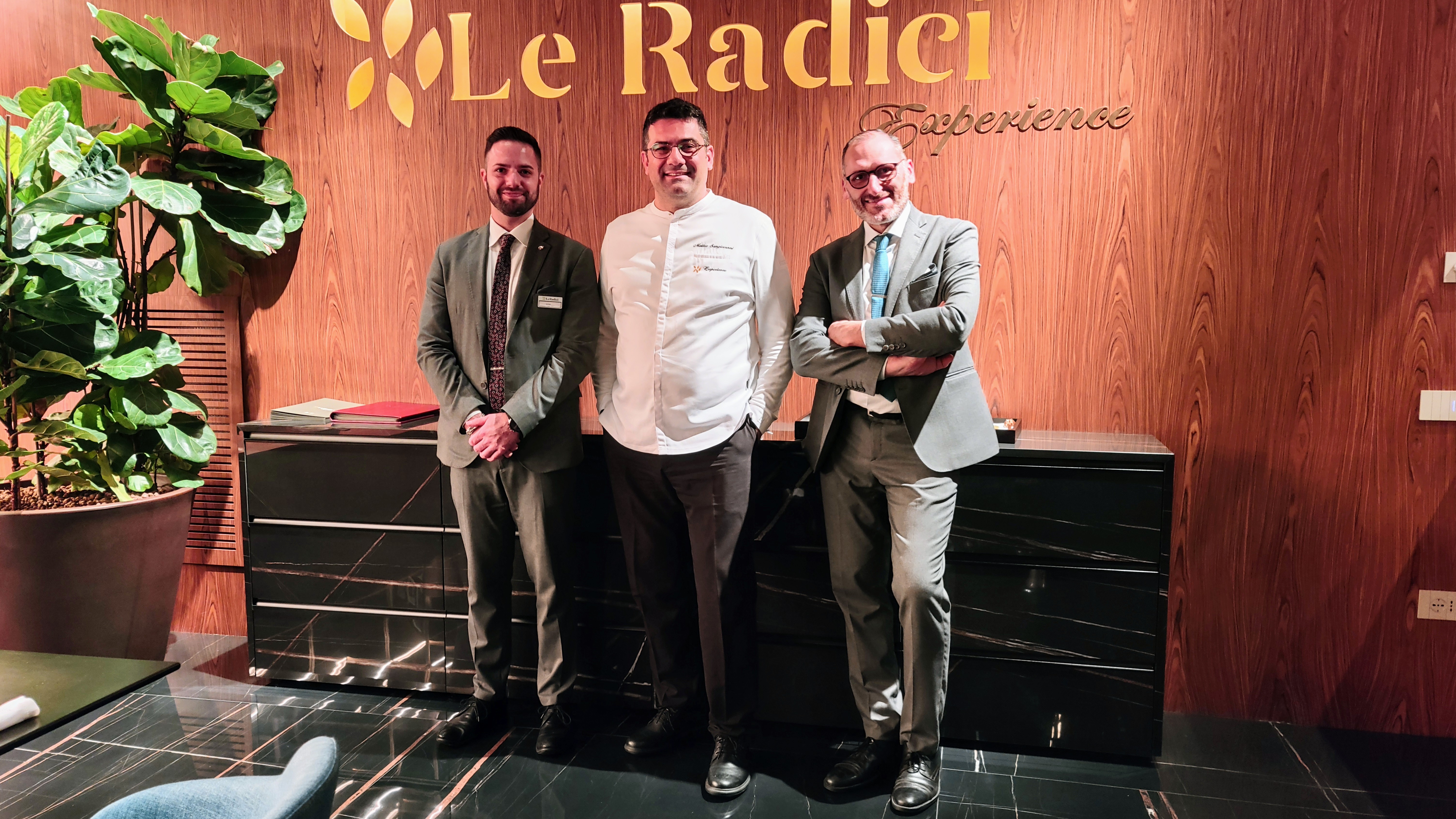 E’ stato emozionante, grazie ad una cena, tornare a percepire quanto la provincia di Salerno abbia alzato l’asticella sulla qualità dell’accoglienza e del fine dining in questi ultimi anni. E’ stato bello riprendere daccapo un’amicizia iniziata otto anni fa, interrottasi per un pò, e congratularsi con il caro amico chef ritrovato per l’eccellente gestione della cucina di un hotel di altissimo livello a Battipaglia. L’executive chef Matteo Sangiovanni (membro Euro-Toques) lasciato al Tre Olivi di Paestum e felicemente rincontrato al Radici Experience dell’Hotel Commercio, gestito dalla famiglia Adinolfi, oggi è nel pieno della maturità professionale. Forte delle esperienze in Italia e all’estero nelle location di pregio e delle collaborazioni con gli chef più ambiti a livello nazionale, è un abile mentore per la sua brigata, un poliedrico restaurant manager, una eccellente food guide che sa come indirizzare il cliente verso ciò che a lui piace proporre e non viceversa, un progettista della cucina dalle solide fondamenta. I suoi piatti strizzano un occhio all’estetica e un altro al piacere del palato, nessuna delle due sfere sensoriali si sovrappone sull’altra e tutto cammina secondo schemi ben precisi a cui nessuno può opporre resistenza. Questo anche grazie all’aiuto del suo team di giovani ragazzi che ha seguito i suoi insegnamenti (come il sous-chef Giovanni Galderisi), sin dai tempi della costituzione dell’Associazione Team Costa del Cilento, di cui Sangiovanni è stato il fondatore e maestro. Radici Experience, ristorante inaugurato lo scorso dicembre, è un ulteriore tassello di un mosaico impreziosito da Radici Ristorante e Radici Lounge per particolari aperitivi in abbinamento a ricercati cocktail e finger food. Il progetto è stato realizzato dall’architetto Diego Granese che ha utilizzato materiali importanti valorizzati da un ingegnoso percorso illuminotecnico arricchito dalla presenza del legno, di elementi vegetali, complementi d’arredo di design contemporaneo ma racchiuso in un minimal concept studiato per dare risalto all’elemento fondamentale della location: la cucina d’autore di Matteo Sangivanni con la ricchissima cantina a vista. In sala gli specialisti dell’accoglienza: il maître Francesco Grimaldi e il sommelier Ivan Mendana Fernandez, il primo può vantare importanti esperienze in ristoranti stellati e il secondo è un raffinato intenditore di tutto il comparto beverage, sempre alla ricerca di novità e dei corretti abbinamenti tra portate e vino.