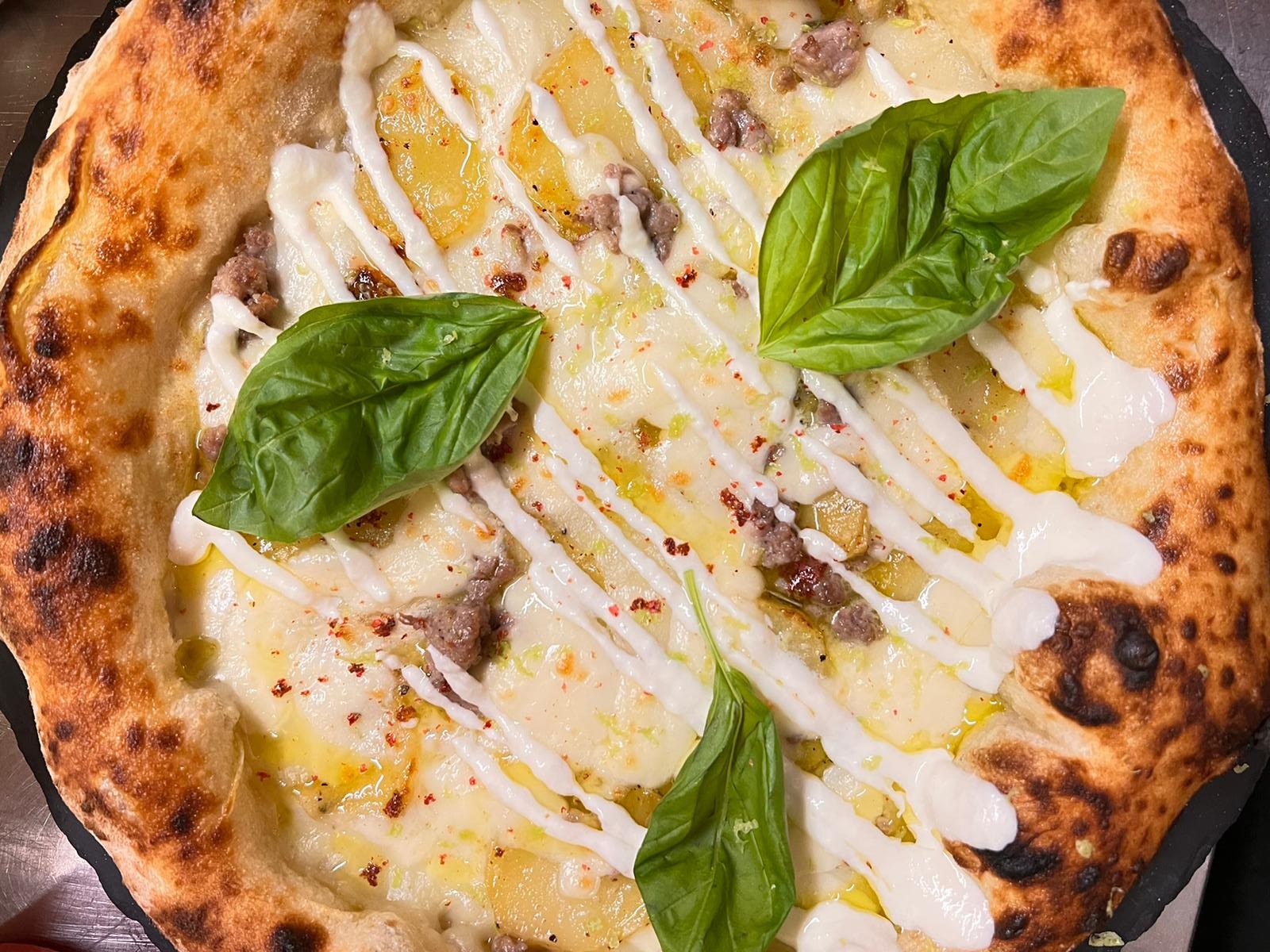 Il disco del bianco impasto viene impreziosito da intriganti topping, frutto della consulenza di Giusy Di Castiglia, determinata chef campana che si dedica alla ristorazione con grande trasporto, esuberante nelle sue creazioni, percorre da sempre la strada dell’evoluzione.