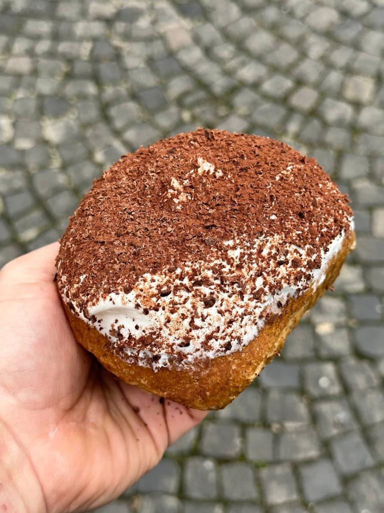 Si chiama TiramiBÙ 42 ed è realizzato con un impasto brioche pandoro al caffè macinato, utilizzando come di consueto la farina speciale “oro” del Mulino Caputo, cremoso al tiramisù con mascarpone di bufala e senza uova. Al cuore un Panzuppato al caffè alla nocciola, in superficie scaglie di cioccolato fondente salato e cacao amaro.