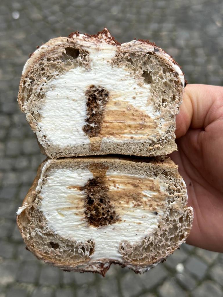 Si chiama TiramiBÙ 42 ed è realizzato con un impasto brioche pandoro al caffè macinato, utilizzando come di consueto la farina speciale “oro” del Mulino Caputo, cremoso al tiramisù con mascarpone di bufala e senza uova. Al cuore un Panzuppato al caffè alla nocciola, in superficie scaglie di cioccolato fondente salato e cacao amaro.