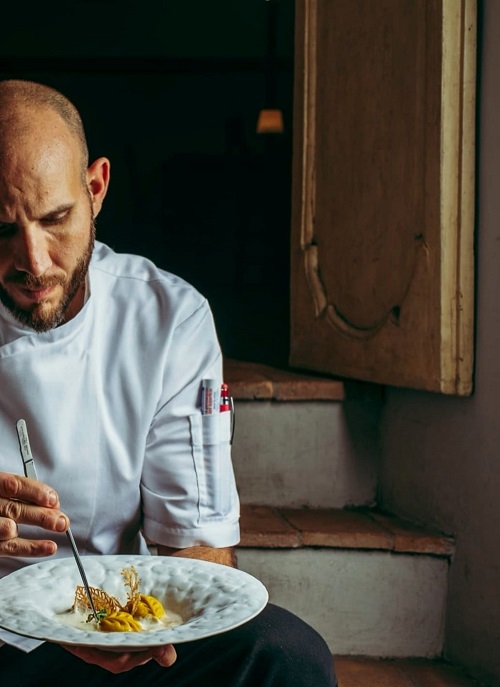 Nei piatti dello chef Montecchiani s’intrecciano i fondamenti di una ricerca instancabile della materia prima, il gusto è forgiato dalla tecnica culinaria, che riesce a celebrare la capacità di stupire con sapori e consistenze, stimolando la fantasia del degustatore.