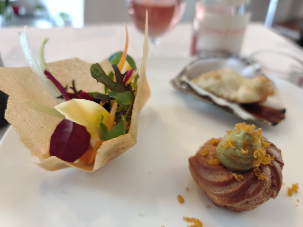Vincenzo, ex chef, ormai è un esperto food&beverage manager, controlla che tutto sia perfetto in sala e con i fornitori. “Ho arricchito la selezione di oli extravergine d’oliva e rinnovato la carta dei vini, – mi ha spiegato – ci saranno belle novità che sfoggeremo anche nel periodo estivo. Non mancano ovviamente le birre artigianali e distillati particolari per il fine pasto. La sala è difficile da gestire ma ci stiamo provando e finalmente vediamo ritornare anche numerosi turisti, molti stranieri, che ci hanno conosciuto un po’ di tempo fa e che continuano a preferire il nostro locale“. Il menù di Masaniello in conclusione è un percorso multisensoriale che lascia segni indelebili. Mi è piaciuta l’attenzione posta agli elementi vegetali e al pescato cotto poiché i crudi, oggi tanto di moda, attirano principalmente un pubblico di giovani e possono anche diventare rischiosi se non abbattuti correttamente. Gli ziti spezzati con rana pescatrice e favette fresche, il tacos di patata con baby verdure croccanti e perle di balsamico, il carciofo alla giudia con baccalà pastellato su fonduta di parmigiano, la bavarese al cioccolato fondente su biscotto alla nocciola con salsa all’arancia, nocciole tostate, porcini e tartufo nero irpino, confermano le abilità acquisite dallo chef Pasquale nel corso della sua lunga carriera, testimoniano la maturità e la fermezza nell’utilizzare le tecniche culinarie con fare apparentemente disinvolto ma chiaramente studiato. Masaniello è a mio parere tra i migliori ristoranti in Costiera Amalfitana, per rapporto qualità prezzo, accoglienza e location; il dehors esterno offre una piacevole prospettiva sulla solare Maiori.
