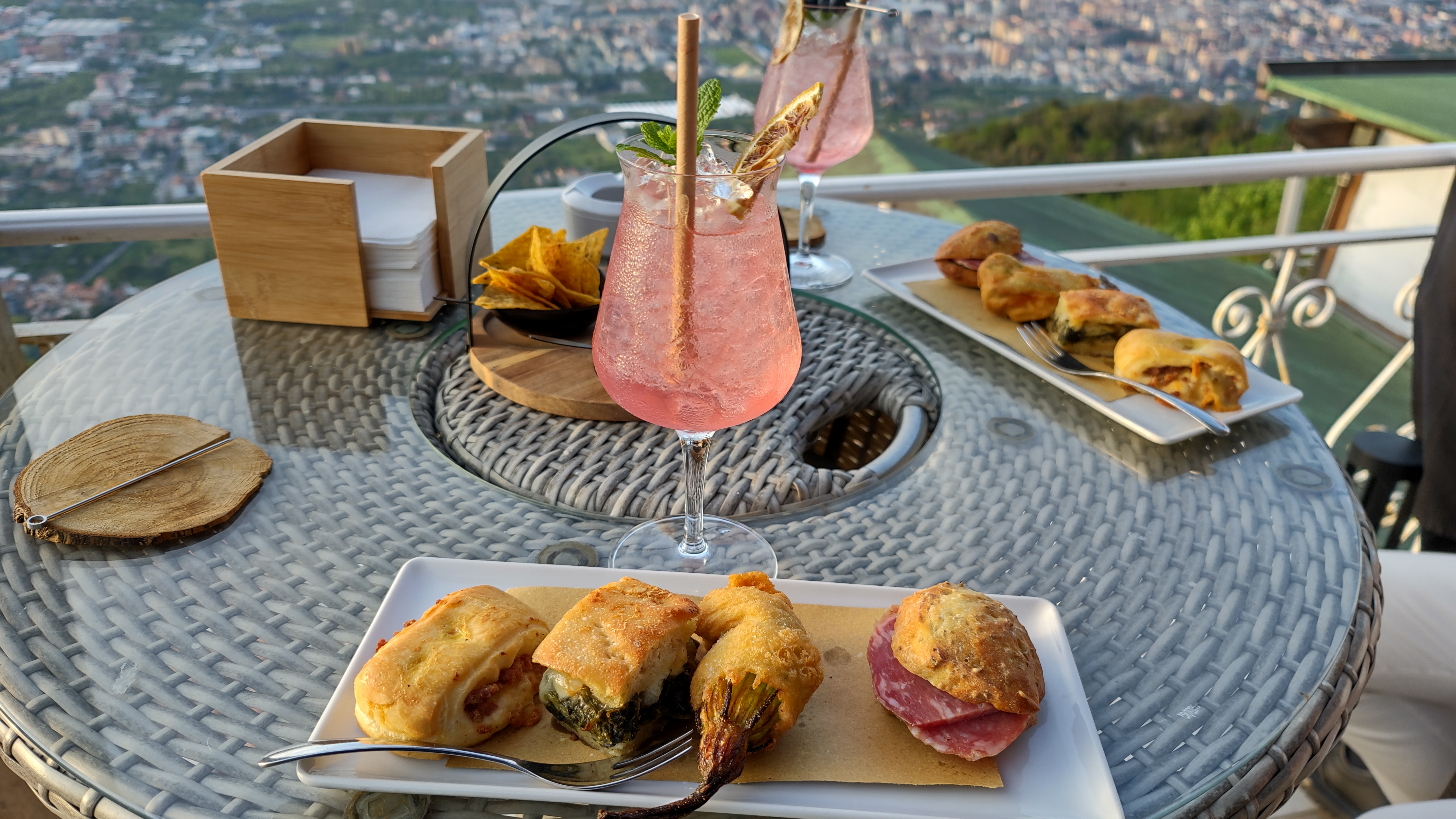 La stuzzicheria è curata dallo chef in persona e la cockteleria dall’impeccabile sommelier Umberto Somma che con meticolosità e ricerca puntuale si occupa anche dell’aggiornamento della carta dei vini del ristorante. Proprio il sommelier, originario di Pimonte, ha aggiunto: “Oggi ho voluto preparare questo cocktail, seguendo anche la tendenza attuale che premia le bevande senza alcool. Il Pink Lady è un omaggio a tutte le donne con il suo gusto dolciastro ma intrigante al tempo stesso, e all’incantevole tramonto dalle mille sfumature rosate che ogni giorno ho il privilegio di ammirare da quassù. Non è facile trovare location uniche come la Tenuta e a tal proposito, invito tutti a godere dell’emozionante spettacolo naturale che di sera si ritrasforma, regalando sensazioni che non vanno spiegate ma vissute“. La gestione di Tenuta Corte San Lorenzo è nelle mani della famiglia Cannavacciuolo, da anni presente nel settore turistico-alberghiero già con Corte San Lorenzo a Sant’Egidio del Monte Albino, e in particolare della giovanissima Carla Cannavacciuolo, general manager con laurea in materie economiche. Chiacchierando con Carla, ottima padrona di casa, si è potuto percepire l’amore e la passione per il suo lavoro e l’attaccamento al territorio in cui vive, tant’è che ha sottolineato: “Siamo in un’oasi di pace nel cuore interno della Costa d’Amalfi, a pochi passi da un mare cristallino, da famose spiagge, da siti archeologici di grande bellezza e suggestione, da piccoli villaggi dove resistono folclore e tradizioni. Mio padre ha sempre pensato di acquistare o investire per migliorare le proprietà, per valorizzarle, coronando il suo sogno imprenditoriale. Con mia madre e i miei fratelli ci siamo suddivisi ruoli e compiti e attualmente sono qui a curare la gestione della Tenuta che non è nuova nel panorama dell’accoglienza ristorativa e turistica anche se noi abbiamo sicuramente dato un’impronta diversa, portato una ventata di freschezza grazie ai miei numerosi collaboratori che con professionalità e garbo rendono meravigliosa la permanenza dei nostri ospiti qui alla Tenuta. Cercherò di portare ai massimi livelli questa struttura a partire dalla tavola. Lo chef Afeltra è un ragazzo umile ma di grande spessore e talento e adoro la sua cucina saporita e piena. Ha lavorato nelle più prestigiose strutture dell’area vesuviana e sorrentina cercando di portare nel suo bagaglio di conoscenze culinarie tutti i trucchi del mestiere che i suoi maestri gli hanno impartito. Con lui siamo in sintonia e mi auguro che anche i commensali troveranno la stessa armonia di sapori che percepisco quando degusto la cucina di Giovanni“.