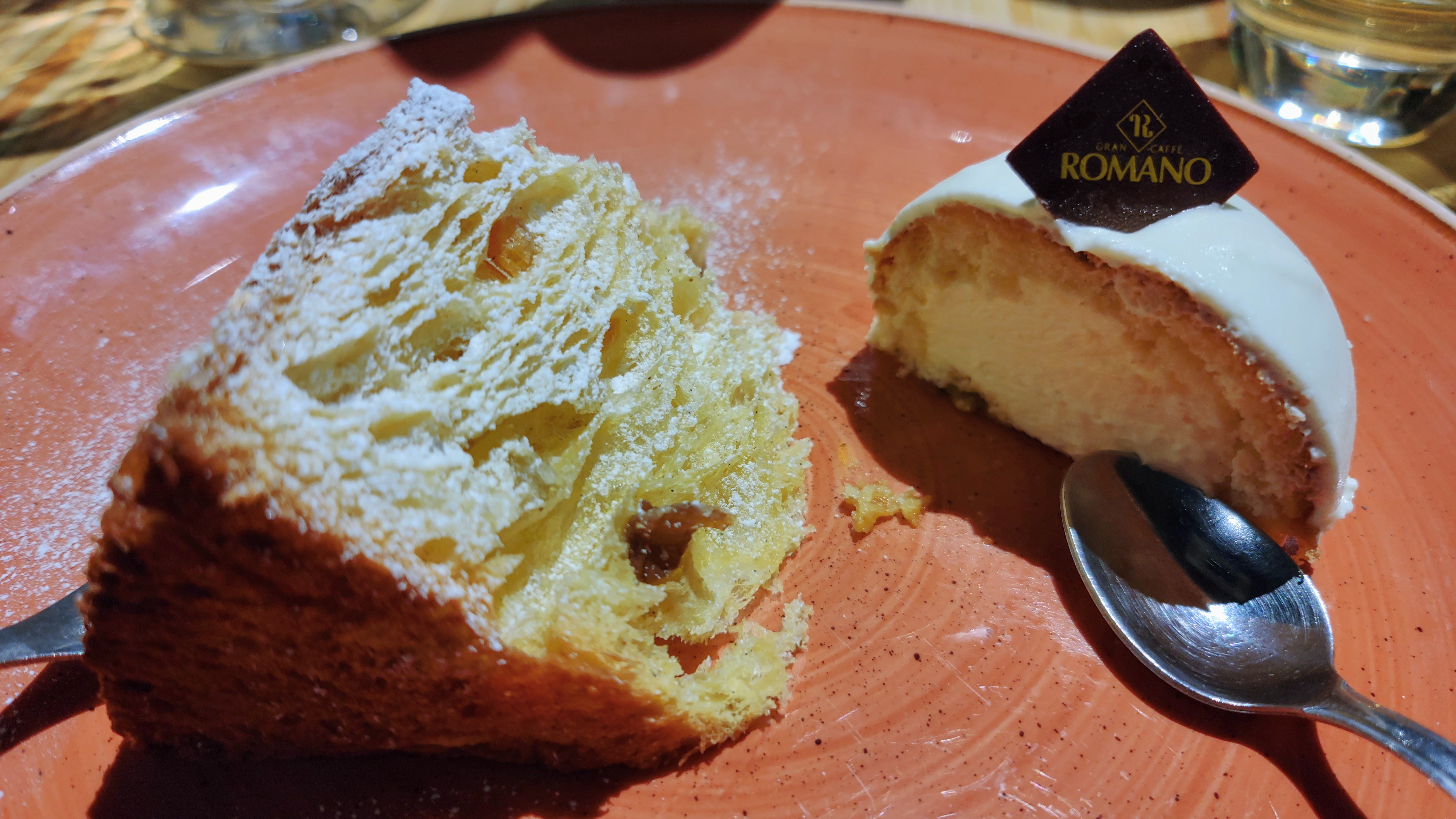 Delle quattro pizze assaggiate, incredibilmente leggere e scioglievoli, due sono state superlative: la Carciofo e la Gambero, i cui ingredienti raffinati, forme e colori armoniosi le hanno avvicinate per bellezza e affinità elettive ai famosi dipinti dell’arte moderna “natura morta con piatto cinese con carciofi, rosa e fragole” di Giovanna Garzoni (1655-1662) e “natura morta con gamberi, vegetali, fiori e un vaso di vetro” del fiammingo Frans Ykens (1615-1692). La Mia Pomodoro e La Nuova Napoletana con impasto integrale sono risultate la massima espressione della territorialità circostante. Oli DOP abbinati alle pizze: Torretta (Rea), Francesco Pepe (Ravece e Marinese) e Tenuta Gorghi Tondi (Civolìa da Biancolilla). Il dessert, comprendente un assaggio di delizia al limone e panettone estivo del Gran Caffè Romano di Solofra, dei Fratelli Raffaele e Gianfranco Romano campioni del mondo nella categoria lievitati, è stato un momento di godimento extrasensoriale e di golosità puro e indimenticabile, arricchito dalla porzione di Elisir di Venere della Cantina Polito a base di Fiano e agrumi.