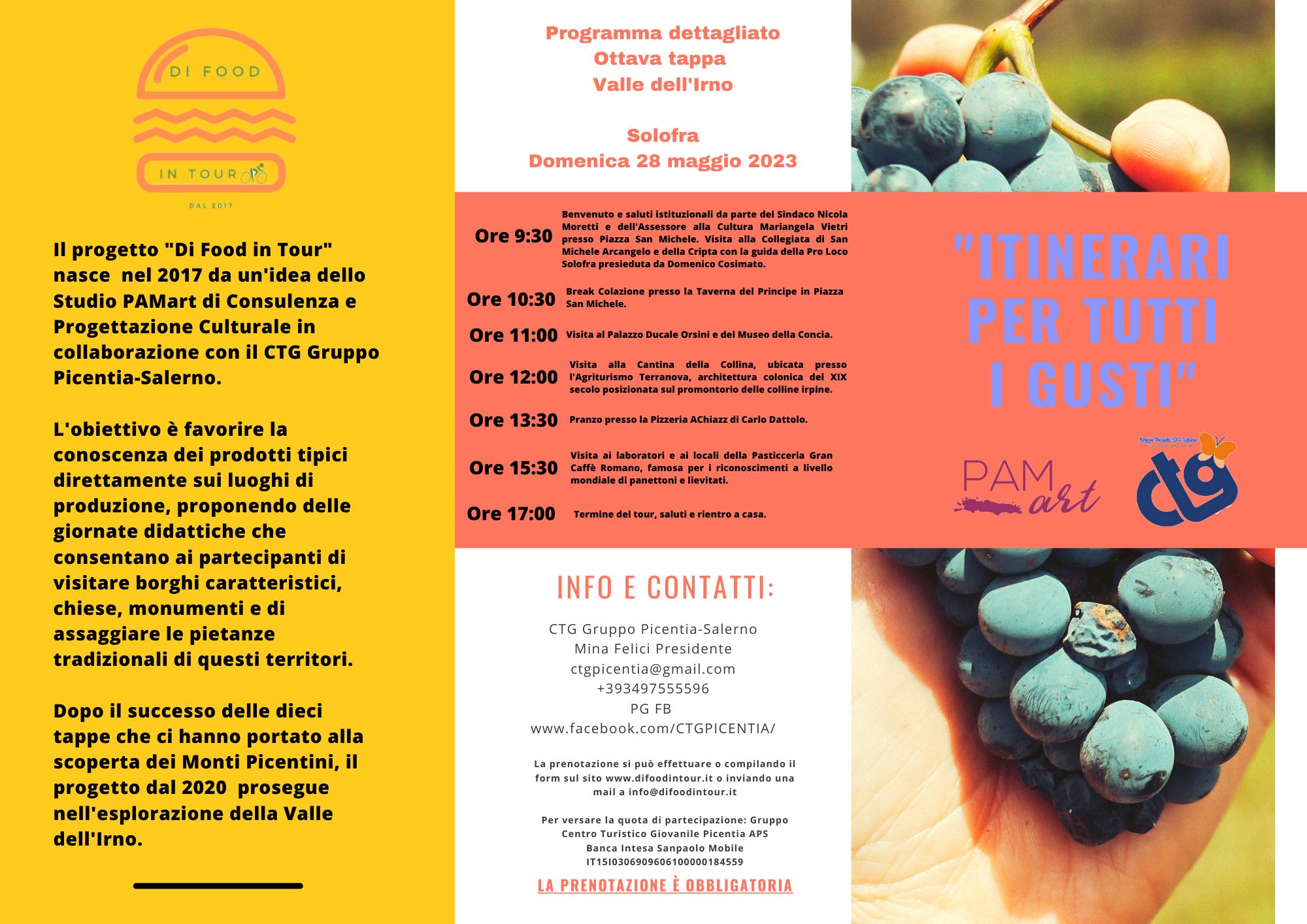Il concetto di turismo di prossimità è diventato particolarmente rilevante negli ultimi anni, grazie a una serie di fattori. Uno di questi è l’aumento della consapevolezza ambientale, che ha portato molte persone a cercare alternative sostenibili alle vacanze tradizionali. Questa formula inoltre consente alle persone di scoprire luoghi interessanti nel proprio paese o nella propria regione, valorizzando le risorse locali e sostenendo l’economia locale. Le attività di turismo di prossimità possono includere visite a musei o monumenti storici nella propria città, escursioni in parchi nazionali o regionali, gite in bicicletta o a piedi lungo sentieri locali, esperienze enogastronomiche nelle vicine località vinicole o agriturismi, e molto altro ancora. L’obiettivo principale è godere di esperienze di viaggio piacevoli e significative senza la necessità di viaggiare a lunghe distanze. Da sei anni il progetto “Di Food in Tour” porta avanti questa filosofia con semplicità e professionalità, garantendo un’esperienza completa a 360° gradi. La Presidente del Gruppo CTG Picentia di Salerno Mina Felici ha ribadito: “Con Solofra abbiamo quasi chiuso il cerchio relativo al territorio Valle dell’Irno, resta Siano come ultima tappa. Ci stiamo già attivando per un nuovo territorio da esplorare tra la fine del 2023 e inizio 2024. Siamo soddisfatte per come sia cresciuto il progetto nel tempo e soprattutto di aver promosso e valorizzato il territorio salernitano dal punto di vista sensoriale ed emozionale. Il progetto per un periodo è solo rallentato, ma non si è mai fermato, e prima o poi siamo certe che gli enti locali, lo utilizzeranno come importante strumento di marketing turistico-territoriale”.