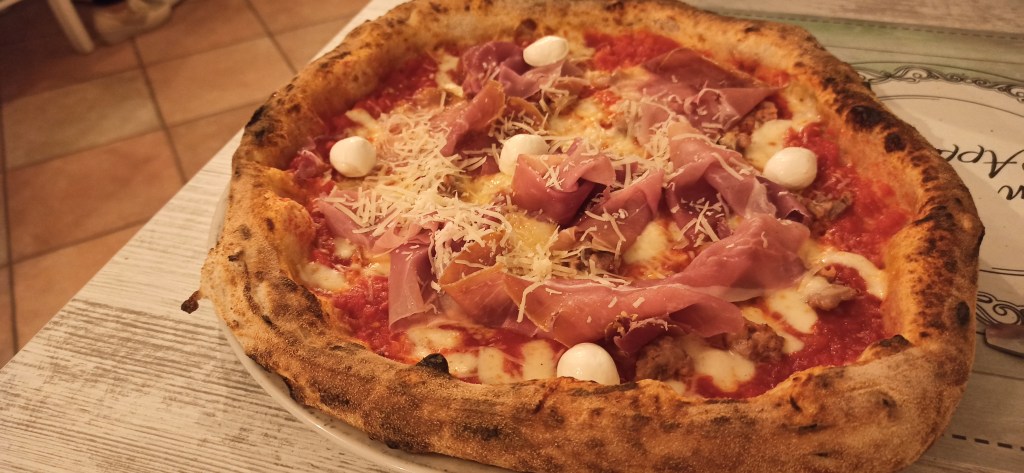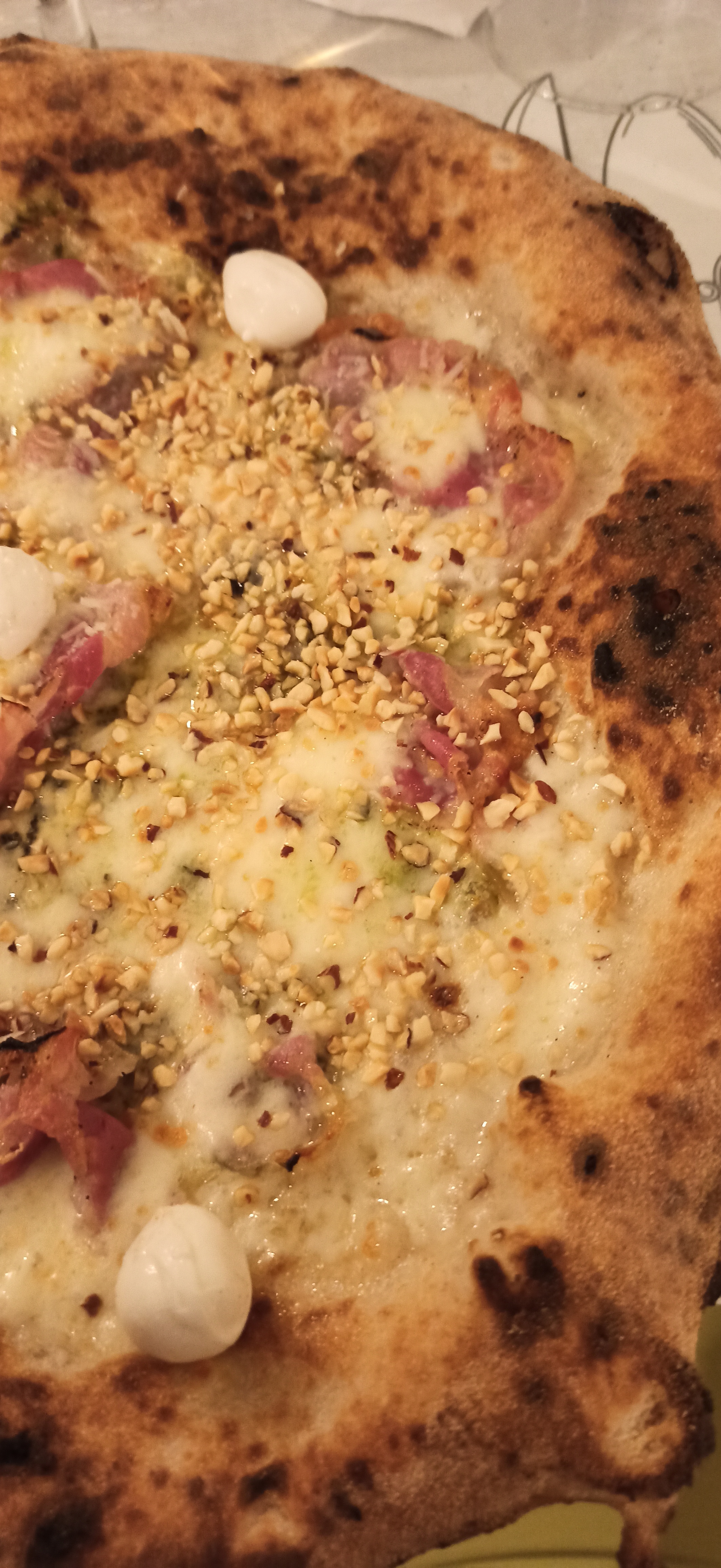 Nemmeno il tempo di lasciare L’Oro di Napoli a Montecorvino Rovella circa un anno fa, che ritrovo il Maestro Pierino Cardonia con tante novità pronte da sfornare. La pizza è sempre il must, il cavallo di battaglia del locale e non potevo non assaggiare ancora due pizze mai testate la prima con salsiccia, prosciutto crudo di Parma 24 mesi, fiordilatte, San Marzano DOP, scaglie di grana e l’inconfondibile tocco alla Pierino, perline di mozzarella in uscita; la seconda invece con fiordilatte, pesto di basilico, granella di nocciole, pancetta croccante, base fiordilatte, perline di mozzarella e aggiunta personale di gorgonzola. Queste pizze rispecchiano proprio la filosofia di Pierino e della sua famiglia che voglio ancora una volta sottolineare: “Una sfogliatella mista a Babà. Questa è la mia pizza, un’esplosione di sapori dove gli ingredienti sono da complemento su un impasto che rende la pizza leggera, soffice e senza che il cornicione perda la minima fragranza per tutta la durata della pizza nel piatto”. Equilibrate, ricche, gustose, digeribili, le pizze sono una vera delizia e non dimentichiamo che Pierino è stato pur sempre Campione del Mondo della XXVII edizione del “Campionato Mondiale della Pizza” a Parma nel 2018, oltre che medaglia di bronzo nella categoria “Pizza Napoletana STG”, per non parlare poi di tutti gli altri prestigiosi riconoscimenti nelle più importanti guide di settore.