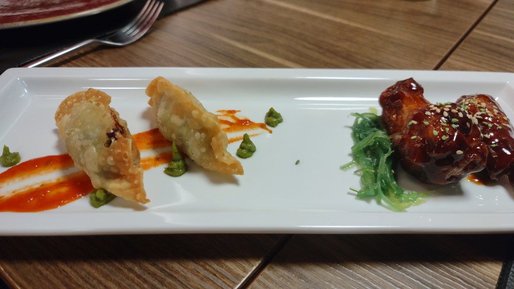 Ma ci sono ancora numerose proposte interessanti che si potranno ordinare dal nuovo menù: partendo dal crostino all’olio extravergine d’oliva cilentano con burro Occelli e alici di Cetara IASA abbinato ad una Falanghina Spumantizzata Oro Cantina Solopaca, si arriva gli antipasti rappresentati dalla cialda di cono con battuta di fassona, stracciata di bufala, granella di pistacchio e caviale di limone, il carpaccio di Black Angus americano con scarola riccia, pomodorini gialli e rossi, olive taggiasche e pecorino Occelli affinato al Barolo su croccante di pizza in pala con affumicatura al faggio, i gyoza napoletani di riso farciti con salsiccia, peperoncini verdi e provola su salsa allo scarpariello e riduzione degli stessi peperoncini e le alette di pollo glassate in salsa teriaky, sesamo e accompagnate da alga wakame che vale davvero la pena assaggiare, meglio ancora se degustati con una raffinata bottiglia di Rosato Alìe Frescobaldi.