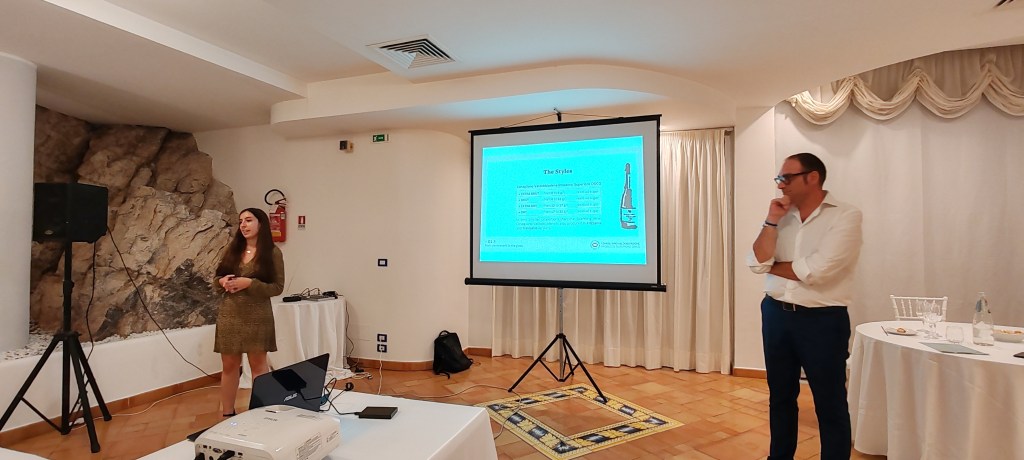 Prima di proiettare le slide per illustrare la storia del Prosecco, i convenuti hanno ricevuto i saluti del Direttore Tomasi, docente della Masterclass assieme a Stanzione, e della giovanissima Brand Ambassador Anna Nardi per Perlage Winery che ha presentato brevemente la storia aziendale della sua famiglia. Dopo i saluti sono state proiettate diverse slide di approfondimento.