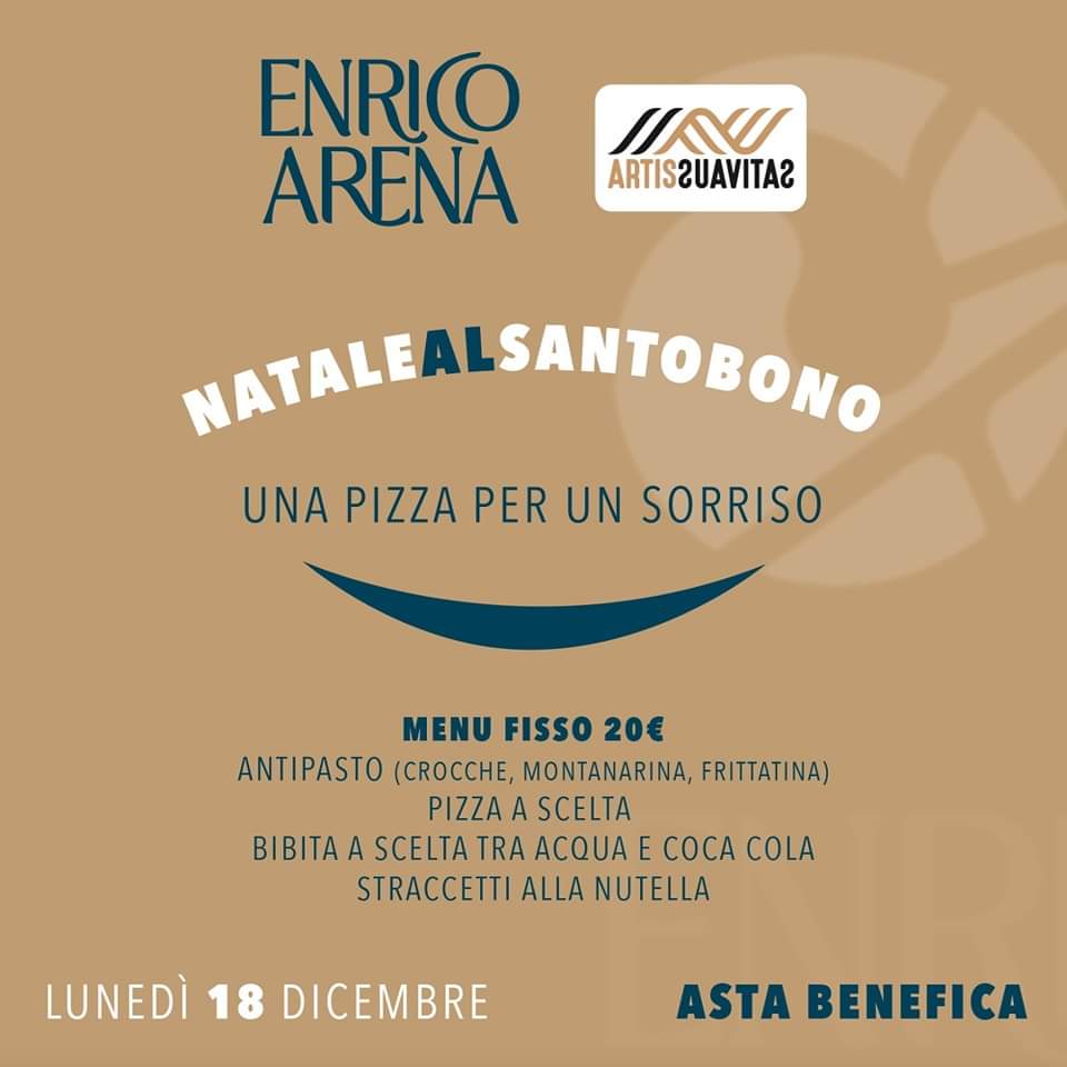 “Ho deciso – afferma Enrico Arena – di aderire alla bella iniziativa promossa dall’associazione Artis Suavitas Aps “Natale al Santobono – una pizza per un sorriso”. Parte del ricavato della serata, a cui ho dedicato un menù dal costo di 20 euro, sarà devoluto a sostegno dell’iniziativa “Un libro per un sorriso” a favore dei bambini ricoverati presso i due presidi ospedalieri dell’ A.O.R.N “Santobono – Pausilipon” di Napoli. Sempre durante la serata, sarà indetta un’asta benefica nel corso della quale collezionisti ed amatori, potranno accaparrarsi due veri e propri cimeli: la maglia autografata da Massimo Oddo della partita Milan vs Manchester United, semifinale di Champions League 2006/2007, e la stampa litografica con prova d’autore dell’opera “Diego Eterno”, che l’artista Domenico Sepe ha dedicato a Diego Armando Maradona. Inoltre – conclude nel corso della serata avrò l’onore di essere affiancato da due grandi Maestri, come don Antonio Starita ed Attilio Albachiara, i quali hanno accolto subito il mio invito, perché anche per loro fa sempre bene fare del bene”.