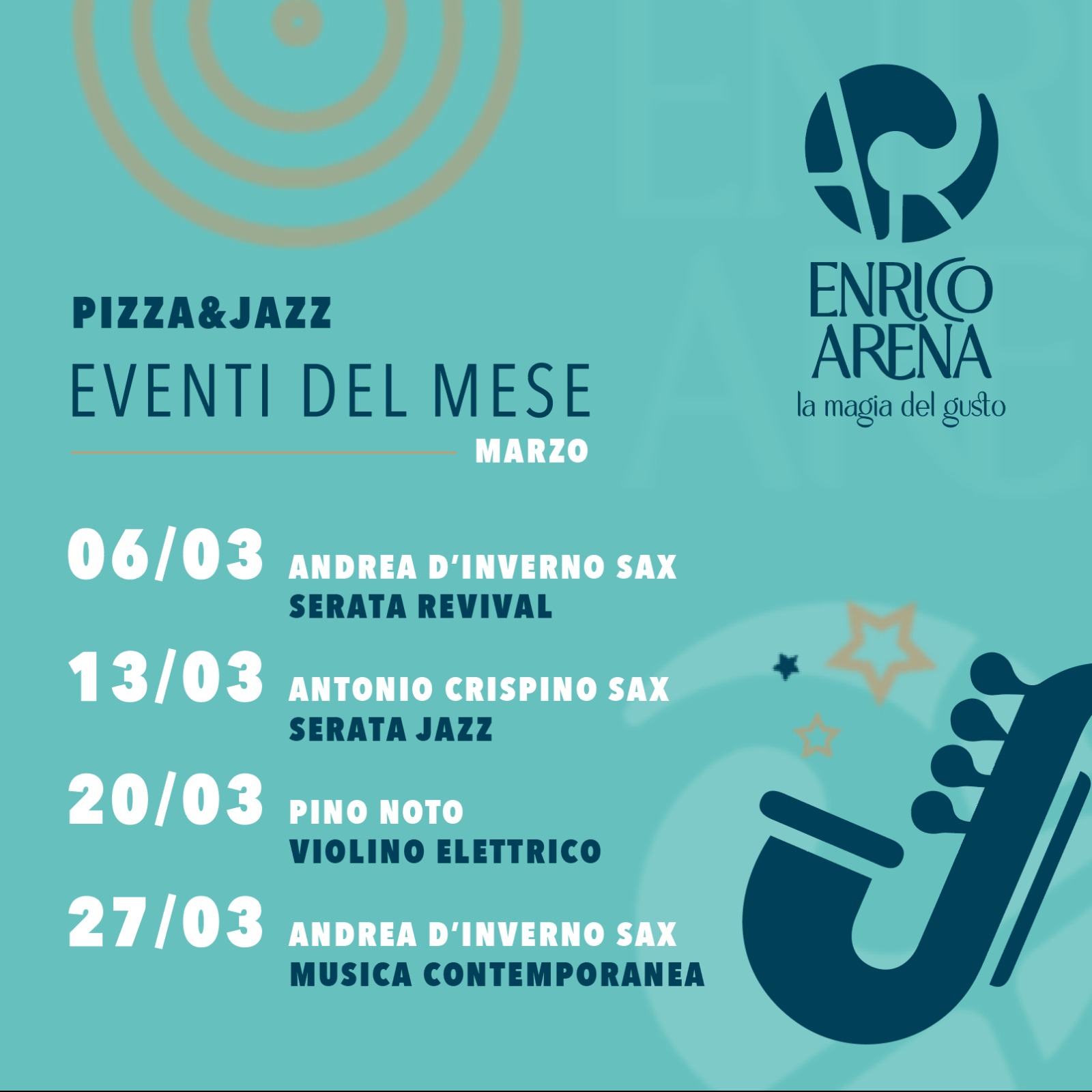 Il talentuoso pizzaiolo casertano ha allestito un programma di quattro serate, prevedendo ogni mercoledì un serata all’insegna della buona tavola e dell’ottima musica, con l’obiettivo di rendere ulteriormente piacevole la degustazione delle sue apprezzatissime pizze. Questo il calendario degli appuntamenti di “Pizza & Jazz” in programma presso la pizzeria Enrico Arena di Santa Maria Capua Vetere:
