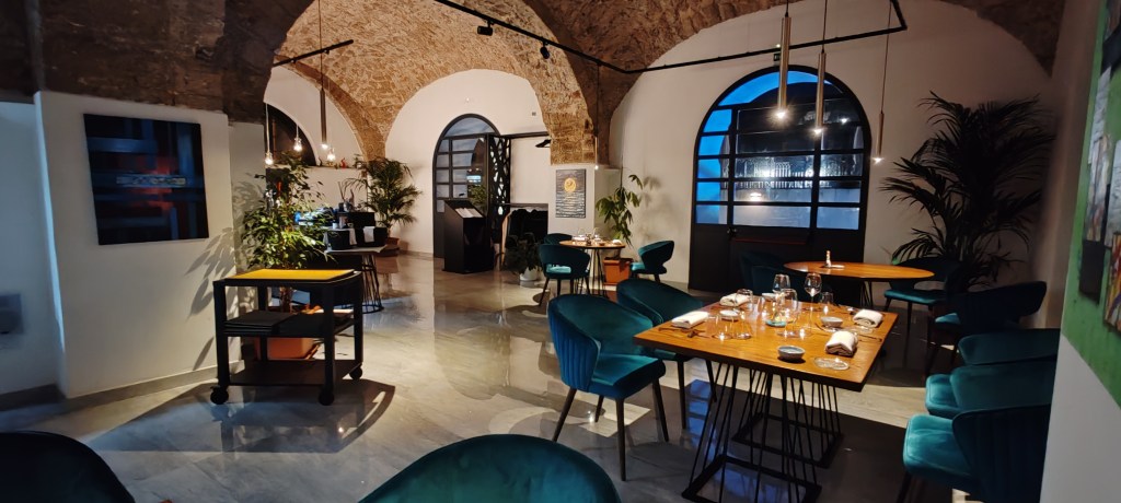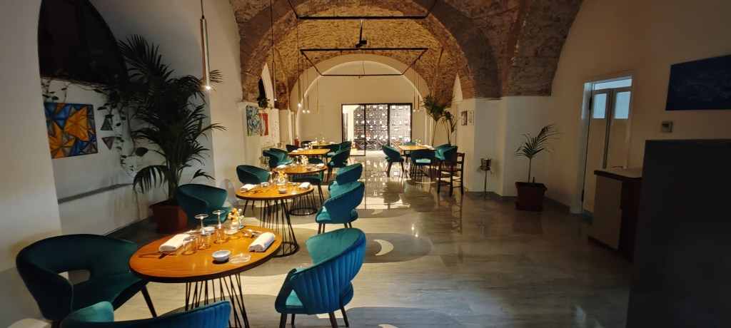 Vietri sul mare, le stradine si intrecciano e le possibilità sono due: restare sopra o scendere giù alla marina. Volendo proseguire per il mare si imbocca l’unica strada in discesa e alla fine del percorso si giunge al ponticello dove scorre il fiume Bonea. Svoltando subito a destra appare un antico e massiccio stabile, prima rimessa di pesca e poi fabbrica di ceramiche, oggi Arca Restaurant. Il progetto di restyling dell’edificio è iniziato circa tre anni fa e il locale ha visto l’inaugurazione agli inizi del 2023. I lavori di ristrutturazione sono stati seguiti dal giovanissimo Armando Lembo, lo chef resident di origini napoletane. Persino meglio di un architetto, Armando è riuscito con il suo talento a curare in ogni minimo dettaglio il design di Arca, un ristorante bellissimo dalle mille potenzialità, in cui l’arte si mescola alla cucina d’autore.