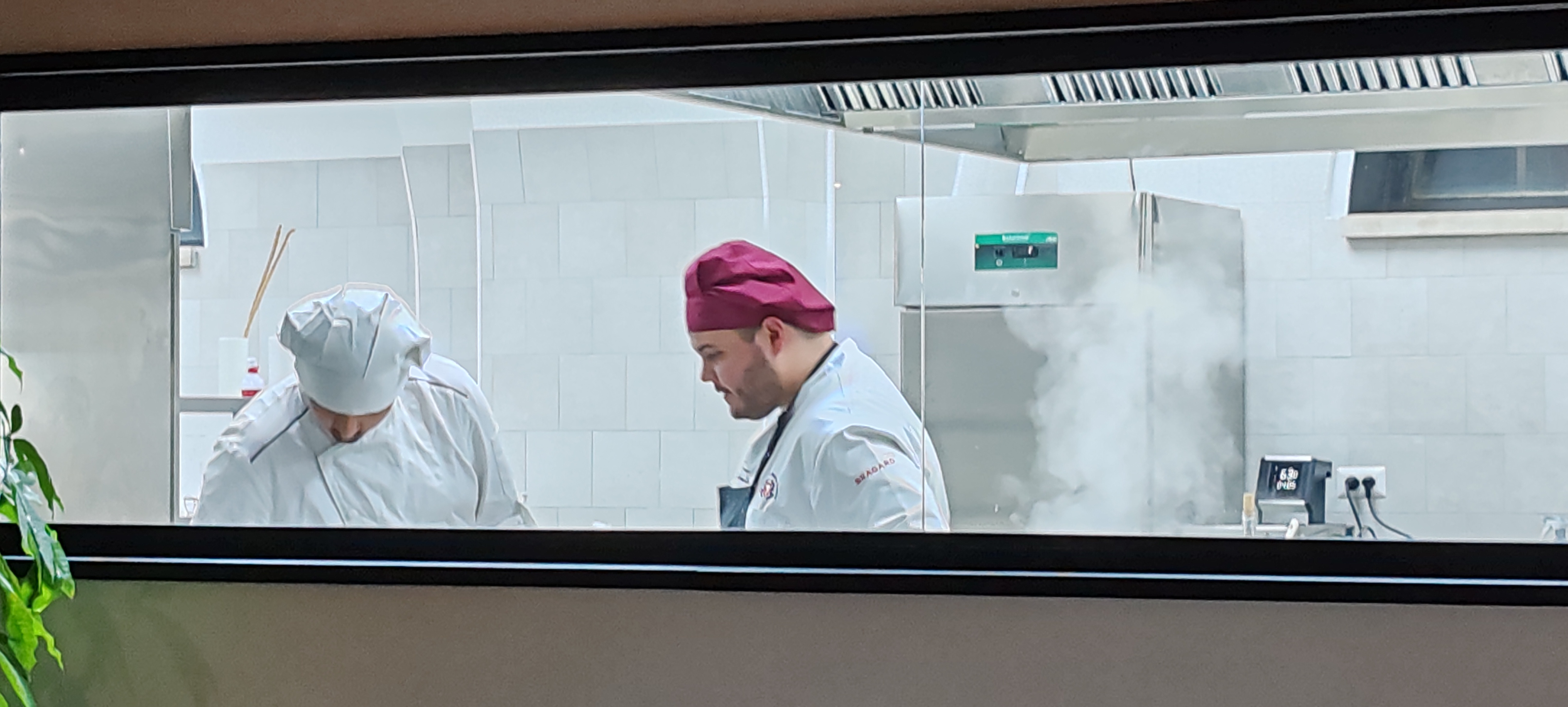 La brigata di cucina si muove all’unisono con Armando che come un direttore d’orchestra la dirige in un’atmosfera placida e silenziosa, tant’è che a parlare sono solo pentole, piastre e mestoli avvolti dai fumi delle padelle in cui armoniosamente vengono immersi per raccogliere preziosi intingoli che profumano di mediterraneo e di brezza marina.