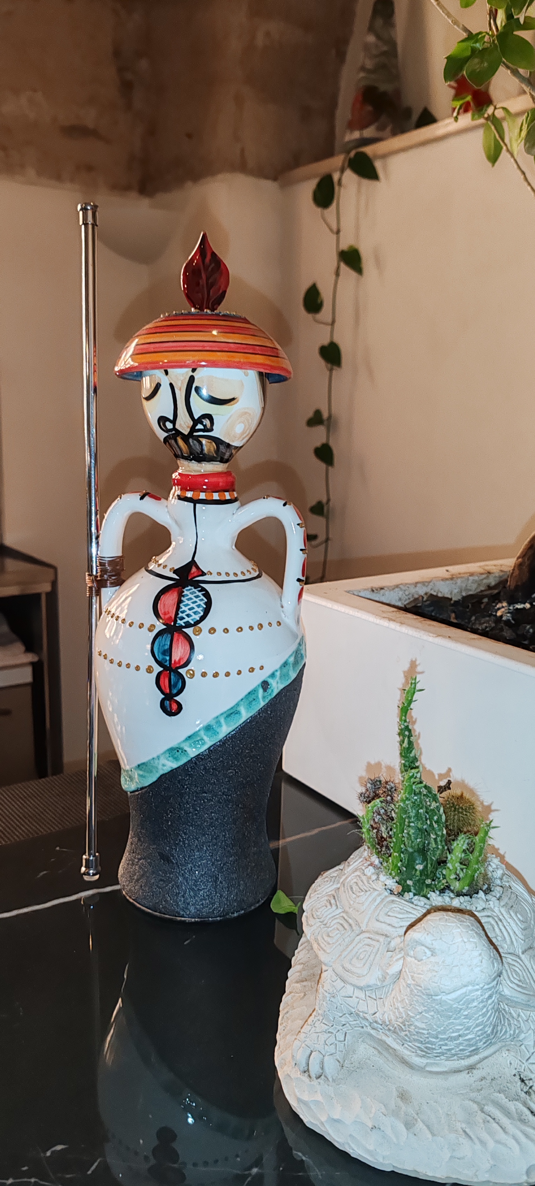 Materiali moderni si mescolano alla pietra viva, alle ceramiche e ai colori tipici vietresi, sui tavoli le creazioni di Sol’Art, un laboratorio gestito dai nipoti del famoso artista Antonio Solimene, volto noto negli anni a cavallo tra il 1950 e fine anni ’90. Alle pareti, proprio come in una galleria d’arte contemporanea, tantissime opere che raffigurano paesaggi costieri, alcuni a firma della madre di Armando. Queste premesse così particolari hanno invogliato sicuramente a scoprire cosa di buono riserva il menù stagionale, incentrato prevalentemente sul pescato e con poche proposte di terra.