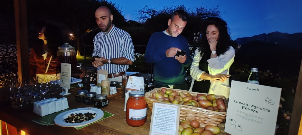 Presenti anche il sindaco di Gioi Cilento, portavoce instancabile del territorio e dei produttori, e la titolare della società My Fair Italia Emotional Way che, da tempo, si occupa di promozione dei borghi autentici esaltando con incontri ad hoc ed eventi, tutta la poesia e la ricchezza dei paesi cilentani. Il percorso di esposizione, che si è tenuto nei celebri Giardini Wagner della struttura, è stato animato da musica cilentana dal vivo grazie alla partecipazione del maestro Angelo Loia & Oiza ( da Ooo- issa), ensemble nato nel 2004 con musicisti del territorio per valorizzare la cultura, la tradizione e il vernacolo del Cilento attraverso la canzone d’autore ereditata dall’opera di Aniello De Vita. Una formula musicale di genere EtnoWorld che ha utilizzato strumenti tipici del Cilento e riprodotto, in chiave elegante, tutta l’atmosfera di una sagra.