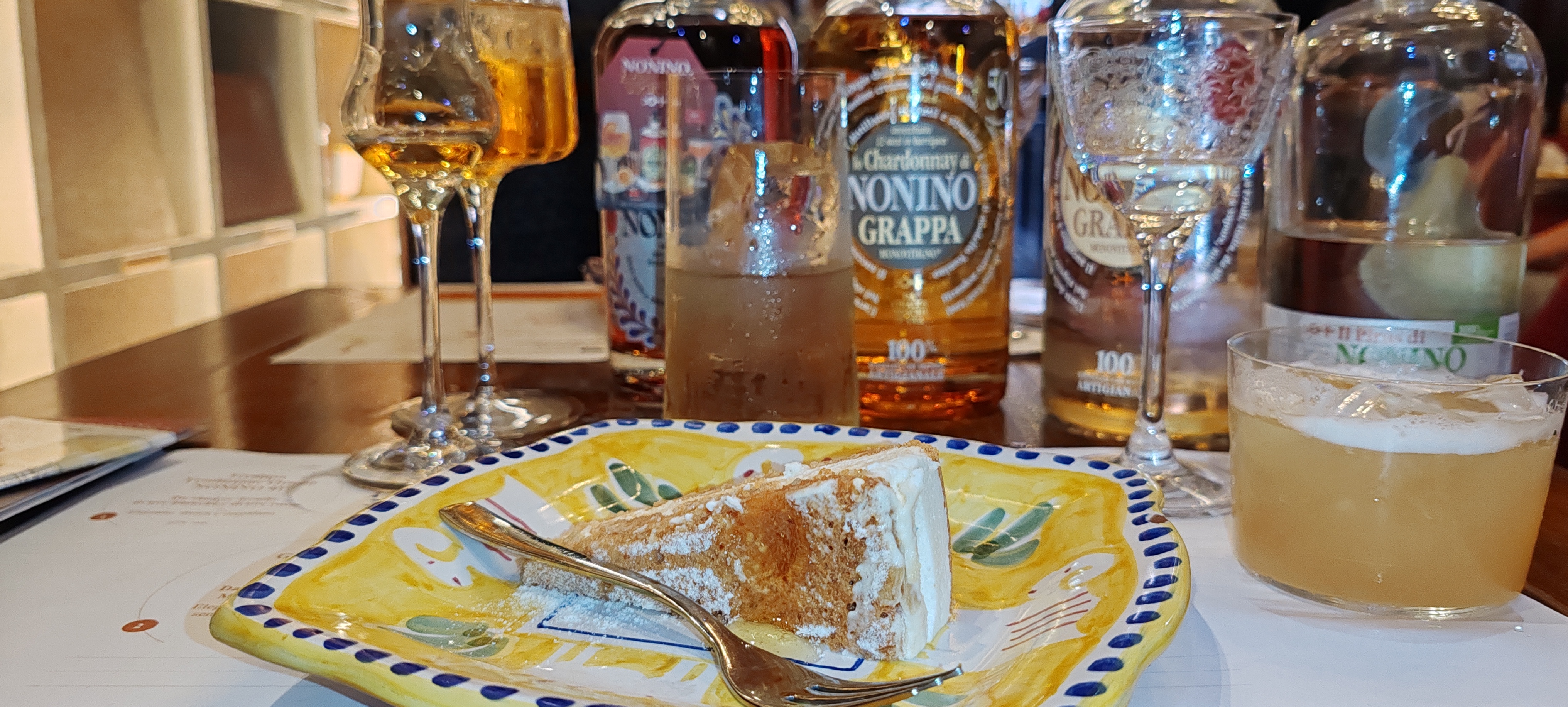 Sempre al pomeriggio, sulla splendida terrazza dell’Hotel cinque stelle “Botanico San Lazzaro”, gestito dalla famiglia Cimini, dalle 18 alle 19 si è tenuta una masterclass con con Cristina e Antonella Nonino e Antonio Virili, bartender al Bistrot Music Club & Bar dell’Hotel La Perla di Corvara in Val Badia, intitolata “Nonino, Italian cocktail Spirit: l’antica tradizione liquoristica della famiglia che anticipa il futuro”. In un’ora c’è stata la possibilità di conoscere la tradizione liquoristica Nonino degli anni ‘30: dall’Amaro Nonino Quintessenza all’Aperitivo Nonino BotanicalDrink e alla Prunella Mandorlata, ottenuti dall’unione tra le antiche ricette originali di Antonio e Silvia Nonino e l’esperienza nell’arte della distillazione della famiglia Nonino, anche attraverso i cocktail preparati sapientemente da Antonio come il Botanical Sprizz “Aperitivo dell’anno 2021, 2022, 2023 international” composto da Aperitivo Nonino BotanicalDrink, champagne a piacere o acqua tonica, cubetti di ghiaccio, scorza o qualche goccia di limone.