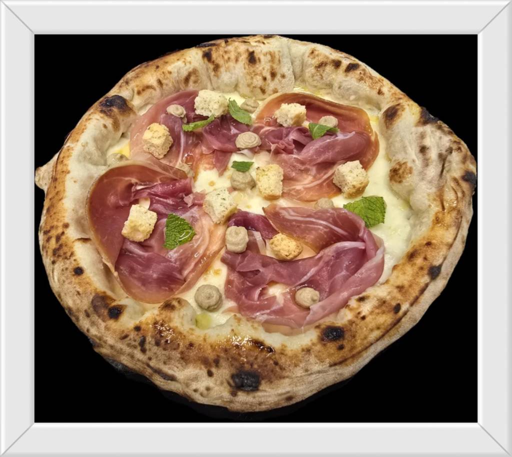 Per quanto riguarda le pizze da provare, si suggerisce la stagionale “Tartufata” con fiordilatte, prosciutto crudo San Daniele stagionatura 20 mesi, crema di porcini a gocce, olio al tartufo e crostini di pane al rosmarino. Questa pizza, ad alta idratazione e cornicione pronunciato, è un vero trionfo di sapori avvolgenti e sofisticati, con un mix di ingredienti che si bilanciano in un gioco di contrasti tra cremosità, sapidità, croccantezza e profumi boschivi. La combinazione di questi ingredienti crea un equilibrio tra elementi dolci e salati, morbidi e croccanti, freschi e intensi. Il fiordilatte e il prosciutto crudo offrono un contrasto delicato e avvolgente, mentre la crema di porcini e l’olio al tartufo donano profondità e complessità, amplificando le note autunnali. I crostini al rosmarino aggiungono vivacità e freschezza, completando un profilo di sapori che evolve ad ogni boccone, offrendo una sinfonia di gusti e consistenze che celebrano il legame tra natura e raffinatezza. La “Tartufata” potrebbe richiamare con i suoi colori, il dipinto “Natura morta con prosciutto” di Paul Gaugain del 1889, in cui l’artista usa pennellate larghe e sature di colore, con pochi dettagli ma grande intensità visiva. Il suo stile qui è molto grafico, con contorni accentuati che separano nettamente gli oggetti e li rendono quasi iconici. Questa tecnica lo distanzia dagli impressionisti, in quanto preferisce una rappresentazione più astratta e bidimensionale, enfatizzando il colore e le forme. Una bellezza cruda e semplice, una celebrazione dei piaceri essenziali della vita, presentati con la sensibilità unica dell’artista.