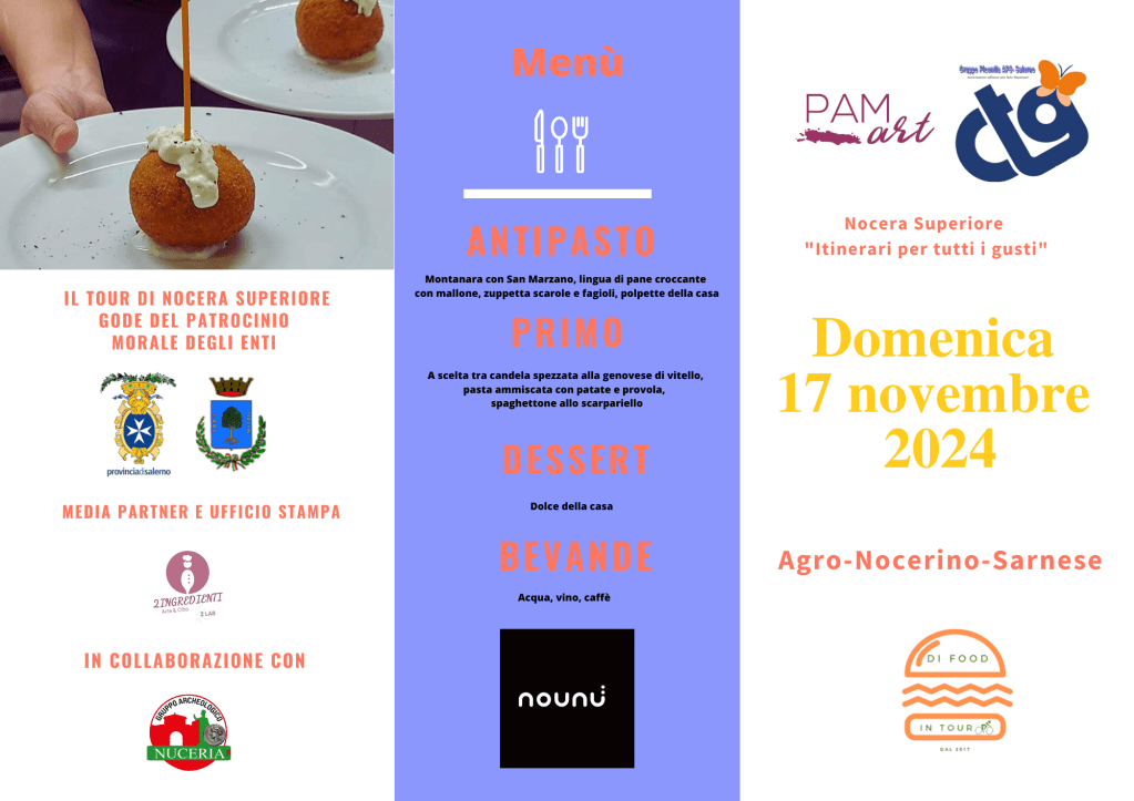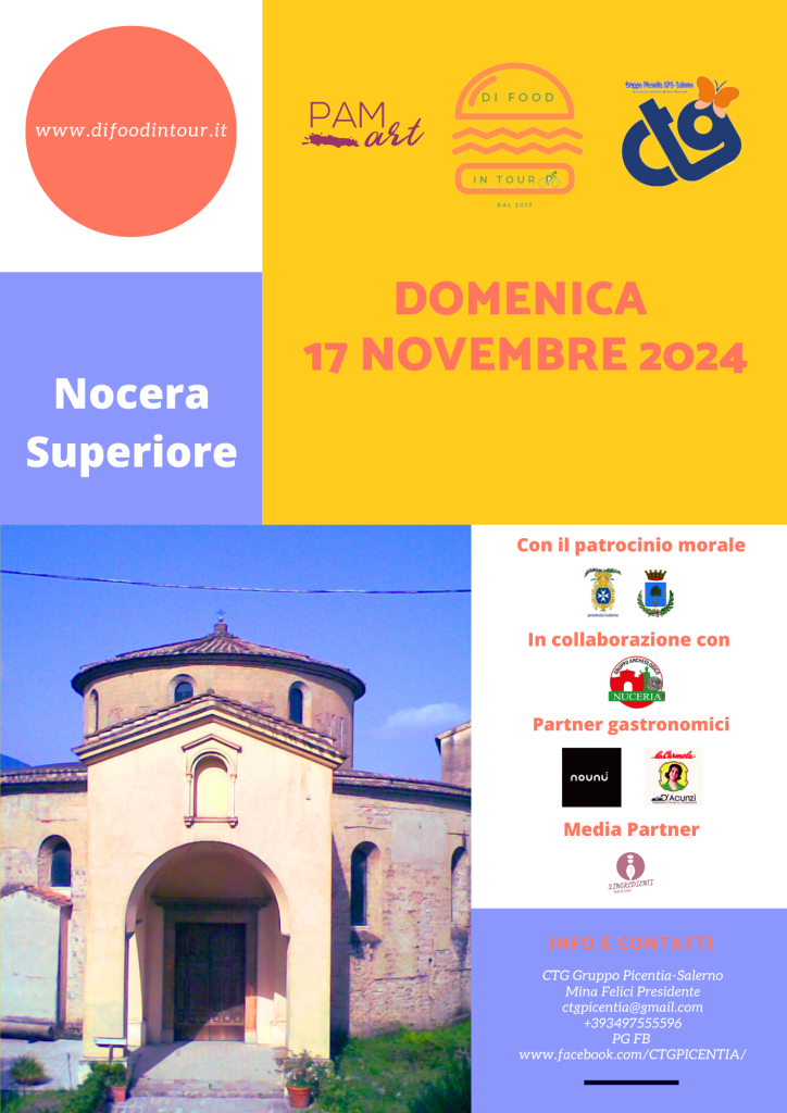 Nocera Superiore si prepara a dare il benvenuto agli appassionati di storia, cultura e tradizioni locali domenica 17 novembre alle ore 9:30, aderendo al progetto Di Food in Tour giunto alla quarta tappa nell’Agro-Nocerino-Sarnese. I partecipanti avranno l’opportunità di immergersi nel patrimonio storico e archeologico della città, guidati dal Gruppo Archeologico Nuceria e accolti dall’Amministrazione comunale per un saluto inaugurale e un caffè di benvenuto presso il Bar La Rotonda. L’itinerario (prenotabile sino a venerdì 15 novembre tramite questo link: 17.11.2024 Nocera Superiore – Di Food in Tour – Itinerari per tutti i gusti