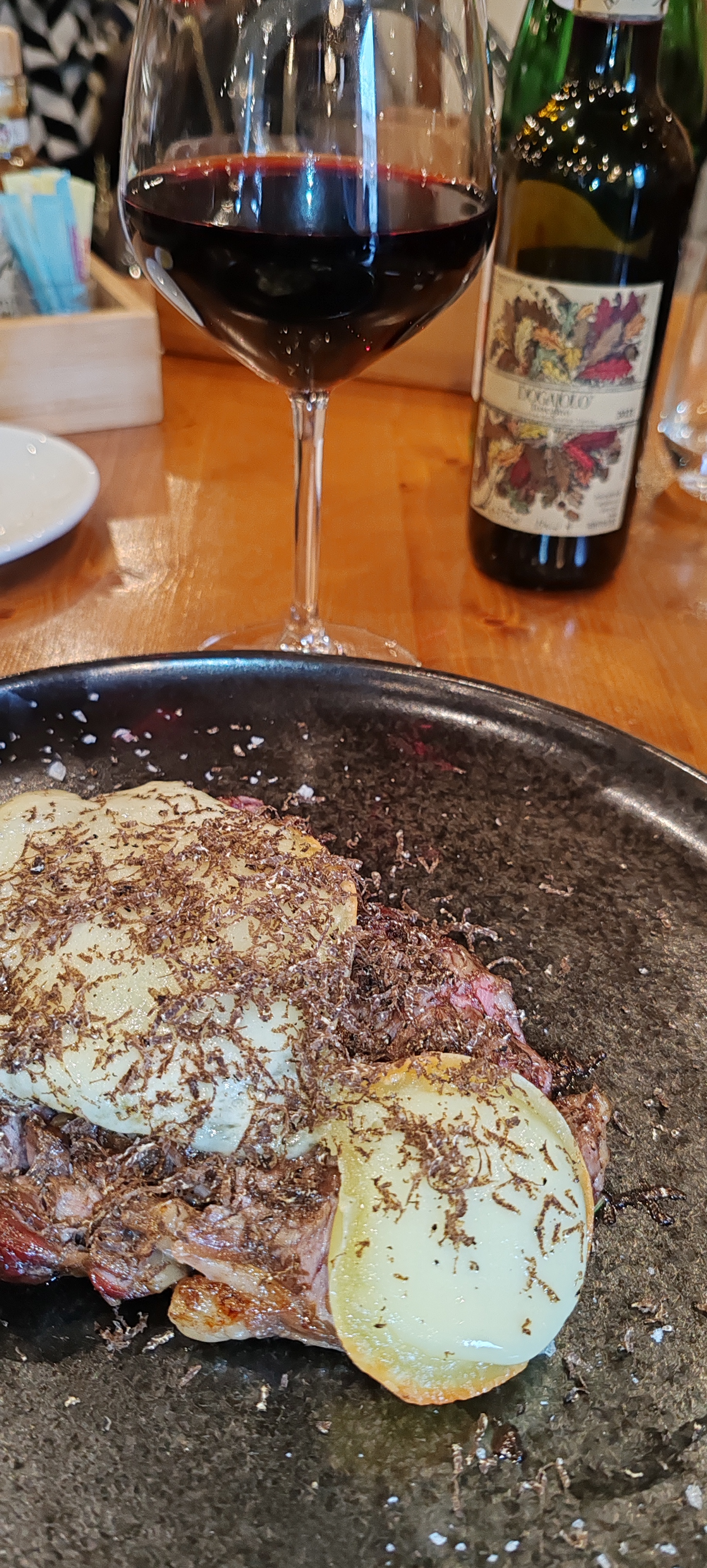Oltre al menù à la carte, Brace e Qualità organizza regolarmente eventi tematici, come serate dedicate alla degustazione di carni rare o abbinamenti esclusivi tra vini e piatti. Questi eventi offrono un’occasione unica per esplorare sapori nuovi e conoscere meglio le eccellenze gastronomiche offerte dal locale. Recentemente c’è stata una settimana di cene esclusive dedicate ai piatti e vini piemontesi come il Barolo, i Tartufi, i Plin, il Vitel Tonnè, il Bunet e tanto altro. Il Barolo, noto come “il re dei vini e il vino dei re”, è prodotto nelle colline delle Langhe, in provincia di Cuneo. Questo prestigioso vino rosso viene realizzato esclusivamente con uve Nebbiolo e si distingue per il suo colore granato, i suoi intensi aromi di frutta rossa, spezie e talvolta note terrose o balsamiche. La sua struttura complessa e la capacità di invecchiare per decenni lo rendono perfetto per accompagnare piatti di carne, arrosti e formaggi stagionati. Se siete fortunati forse riuscirete a trovare proprio come me alcuni fuori menù imperdibili.