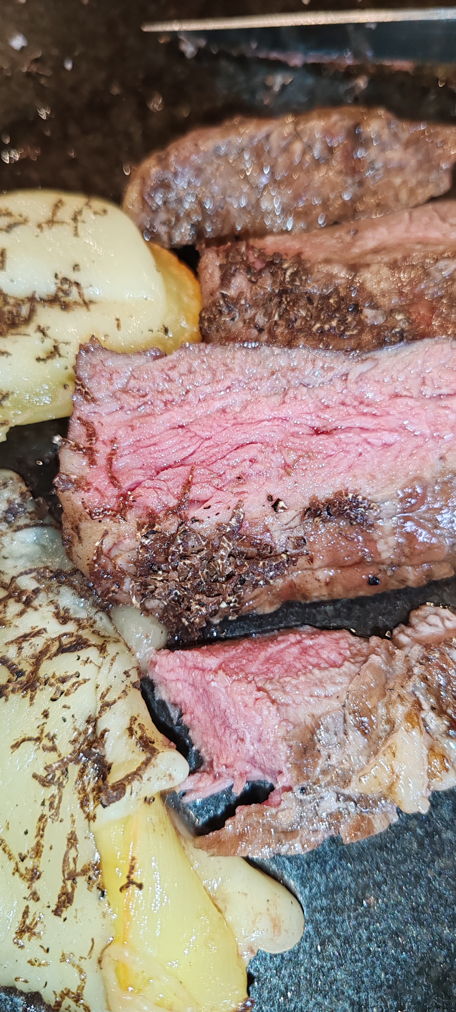 La prima impressione, appena varcata la soglia, è che nulla sia cambiato nell’impegno del locale a garantire un servizio impeccabile e una cucina di altissimo livello. La selezione di carni continua a essere uno dei punti forti del menù, con tagli ottenuti da rinomate razze italiane spaziando poi tra quelli esteri, provenienti da allevamenti certificati e scelti con cura per garantire una tracciabilità impeccabile. La carne, sempre cotta magistralmente sulla brace, esalta ogni sapore con una croccantezza esterna che lascia spazio a una tenerezza e succosità interna indimenticabili. La competenza dello staff nel gestire le temperature e i tempi di cottura è evidente: ogni pezzo di carne viene servito con una cottura perfetta, personalizzabile su richiesta per incontrare i gusti più disparati.