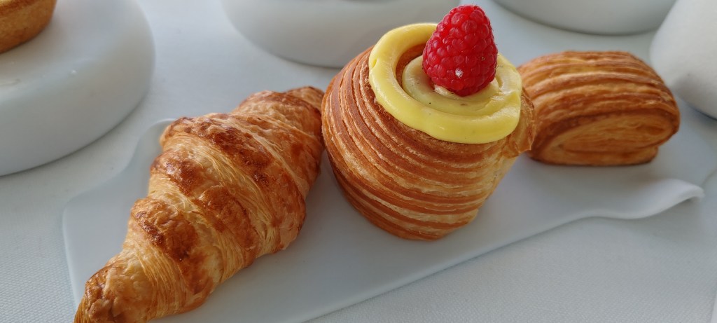 Quando però la colazione è autografata da Crisci, ogni piccola creazione diventa un’opera d’arte mescolata agli oggetti di design disposti sul tavolo e al panorama mozzafiato. Lo chef, noto per la sua capacità di reinterpretare la tradizione con un tocco innovativo, offre creazioni uniche che celebrano la sua maestria nei lievitati e non solo: pane veneziana all’arancia, pan dolce alla zucca e cannella, pane ai cereali e nocciole, sfogliati fragranti alla francese, mini brioche all’italiana con mandorle e crema al limone e al “cappuccino”, plumcake, crostatine all’ananas e alla pesca sciroppata, fette biscottate artigianali accompagnate da burro artigianale alla vaniglia, confetture e marmellate di produzione propria al limone sfusato amalfitano con scorzette, agli agrumi e quella particolare composta unicamente da miele.