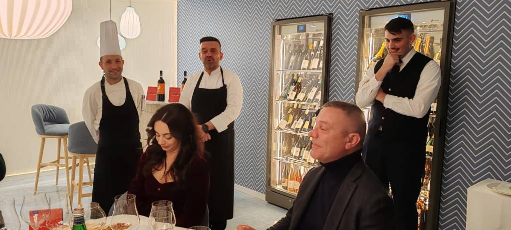 La cena è stata un autentico tributo al territorio campano, unendo la creatività culinaria di Alfonso Crisci con la dedizione alla viticoltura di Casa Setaro. Il menù ha raccontato una storia, intrecciando tradizione e tecniche innovative in un’esperienza sensoriale memorabile. Gli ospiti hanno avuto l’opportunità di dialogare con lo chef e con Massimo Setaro, proprietario della cantina, che ha illustrato le peculiarità dei vini serviti. “Abbiamo assistito ad un percorso gastronomico di grande equilibrio – ha dichiarato il vigneron – tra eleganza e sostanza, una cosa che mi ha affascinato molto. La stessa cosa avviene per i miei vini, c’è l’anfora, c’è la buccia, ma c’è anche tanta eleganza che richiama un sorso moderno, scattante, agile, con tanta buona frutta”. Ad arricchire l’evento è stata anche la presenza di Eugenio Curcio, noto rappresentante del settore enogastronomico, che ha lavorato a stretto contatto con lo chef e la sua brigata per studiare gli abbinamenti perfetti tra piatti e vini. Questa serata è stata una celebrazione della ricchezza enogastronomica della Campania, dove i sapori della terra e del mare si sono incontrati in una danza perfetta. L’evento ha lasciato nel cuore e nel palato dei presenti il ricordo di un’esperienza irripetibile, confermando Oltremare e Casa Setaro come eccellenze del panorama culinario e vitivinicolo italiano.