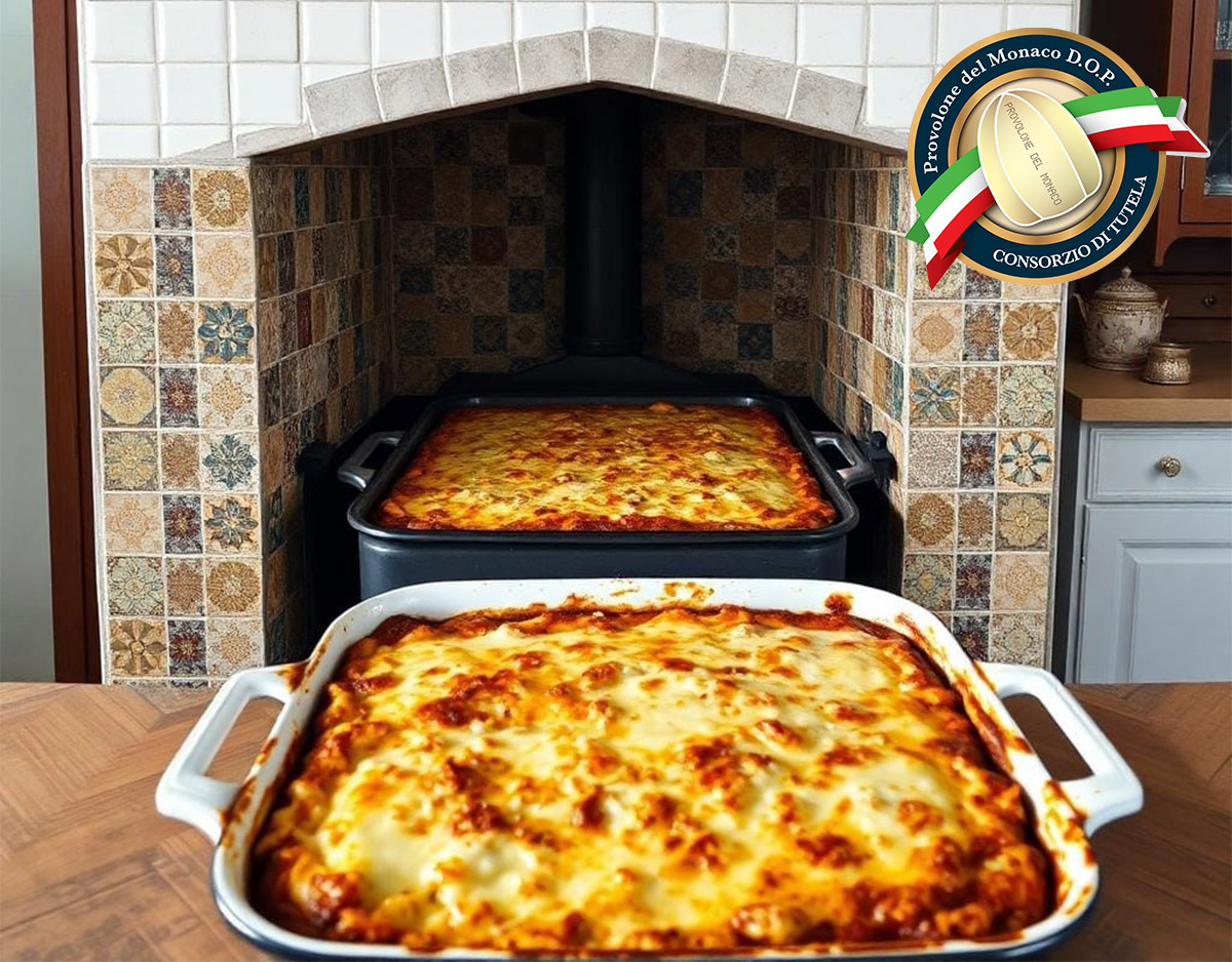 La base della lasagna di carnevale è costituita da sfoglie di pasta fresca, solitamente all’uovo, che vengono alternate a strati di ragù ricco e saporito, preparato con carne di manzo, salsiccia e un mix aromatico di pomodoro, cipolla e basilico. Ma il vero protagonista di questo piatto è senza dubbio il Provolone del Monaco Dop.