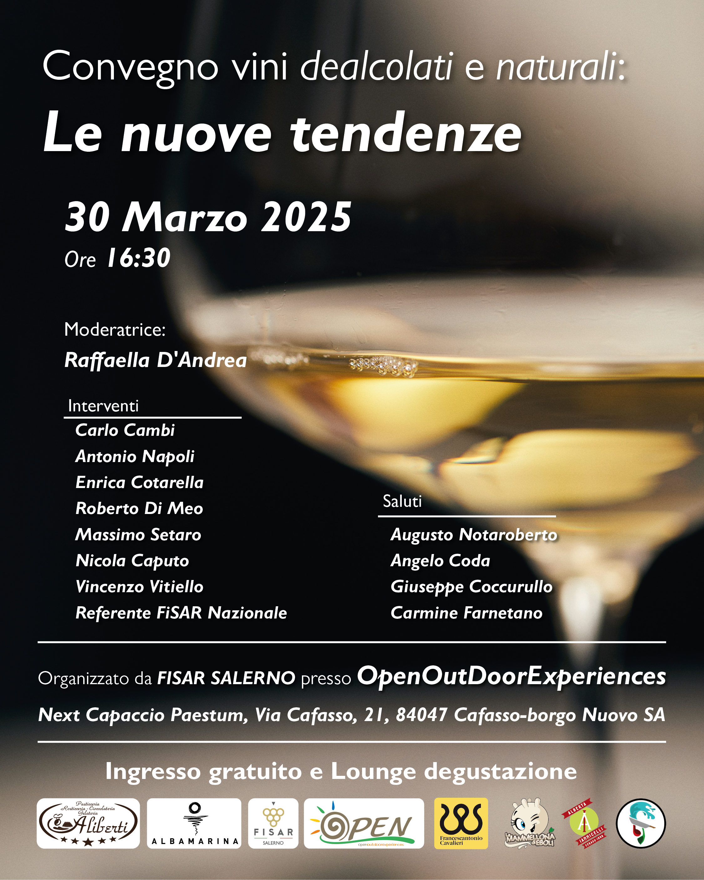 FISAR Salerno conferma il proprio impegno nella promozione di un dibattito costruttivo e innovativo, volto a illuminare le nuove frontiere del mondo enologico e a offrire una visione chiara sul futuro dei vini dealcolati e naturali.