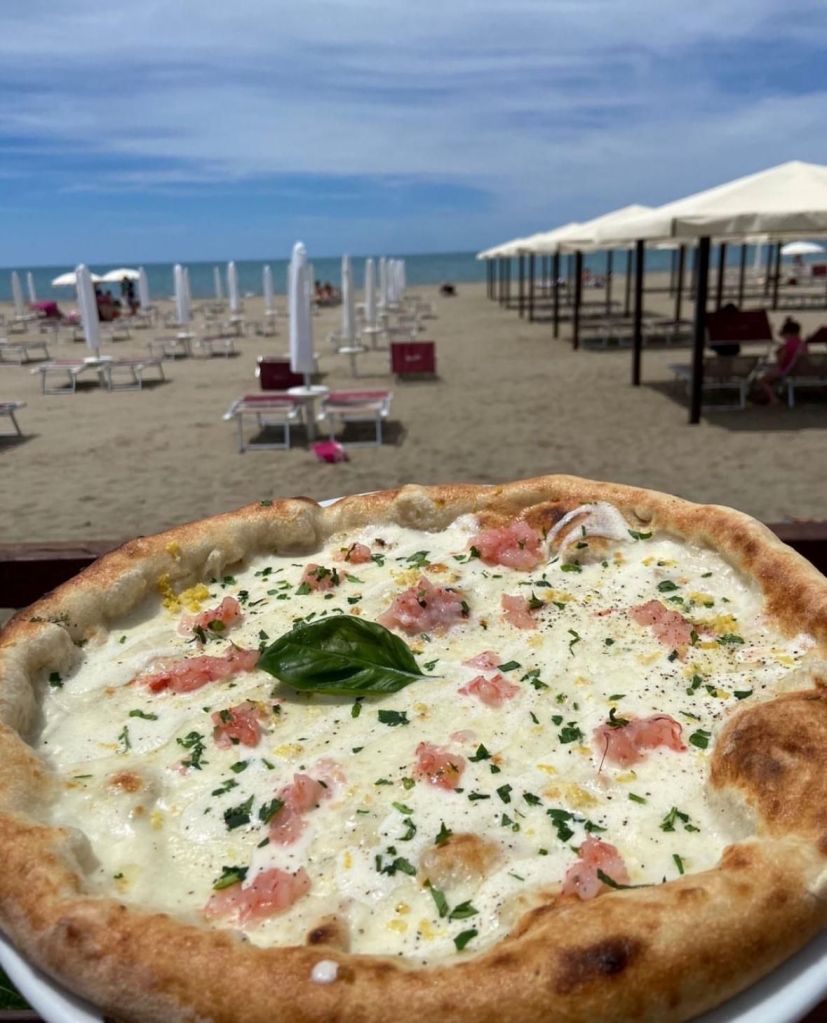 Oltre alle tonde classiche, speciali e stagionali, ci saranno anche alcune pizze pensate appositamente per questa location estiva come la fresca Profumo di Mare con mozzarella di bufala, tartare di gambero rosso, pepe, zeste di limone e olio al prezzemolo.