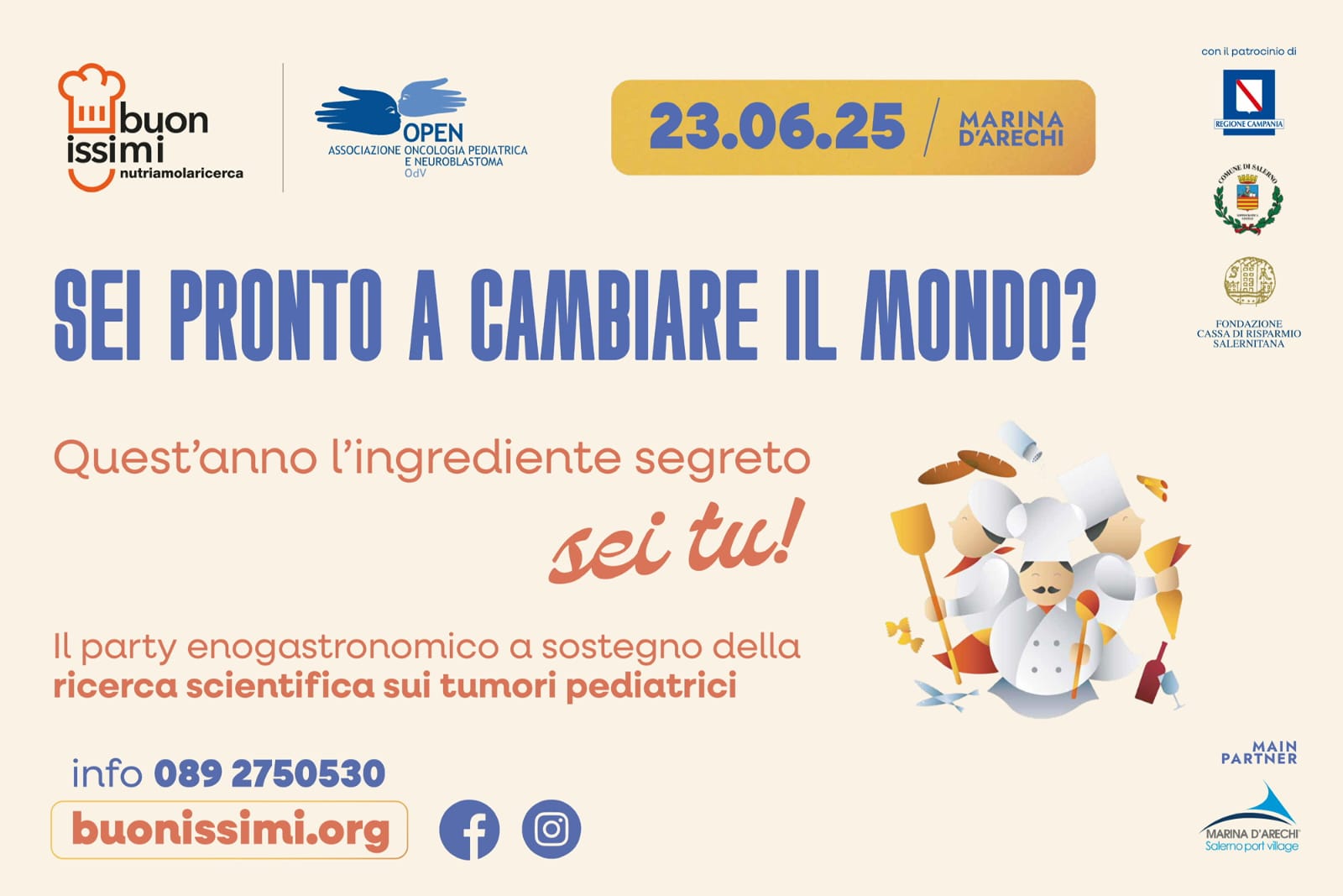 L’appuntamento tra i più attesi dell’estate: Buonissimi, l’evento benefico a sostegno della ricerca scientifica in oncologia pediatrica, giunge alla sua settima edizione e si svolgerà lunedì 23 giugno 2025, dalle ore 20:30, al Marina d’Arechi – Port Village.