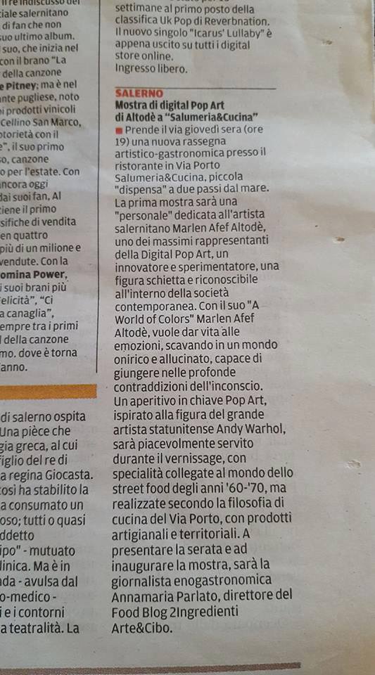 - 9 Marzo 2017 Marlen Afef Altodè A World of Colors presso Via Porto Salumeria&Cucina Salerno